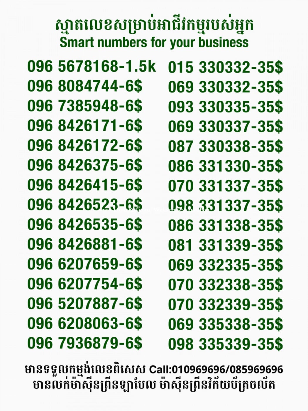 មានលក់លេខពិសេស មានទទួលកម្មង់លេខពិសេស មានលក់ម៉ាស៊ីនព្រីនឡាបែលចល័ត មានលក់ម៉ាស៊ីនព្រីនវិក័យប័ត្រចល័ត មានលក់សម្ភារៈប្រើប្រាស់ក្នុងគ្រួសារ Smart Prime II 1=30$ Smart hero 1=40$ ទូរសព្ទថ្មីក្នុងប្រអប់ លក់ធូរៗរហូតអស់ពីស្តុក អាចប្រើជាឧបករណ៍សម្រាប់ស៊ែរ wifi បាន ទំនាក់ទំនង(ខ្មែរ | English | 中文):010969696 | 085969696 Telegram: https://t.me/W9696 Telegram group: https://t.me/konkonnada អាសយដ្ឋាន:ផ្ទះលេខ២៣ ផ្លូវបេតុងលេខ១ ភូមិទួលពង្រ សង្កាត់ចោមចៅ ខណ្ឌពោធិ៍សែនជ័យ រាជធានីភ្នំពេញ ទីតាំង https://goo.gl/maps/8moqW4iTHUfJEvWQ9 ដើម្បីស្វែងរកលេខអាជីវកម្មដែលលោកអ្នកពេញចិត្ត សូមចូលទៅកាន់:https://www.khmer24.com/Welcome-onlineshop