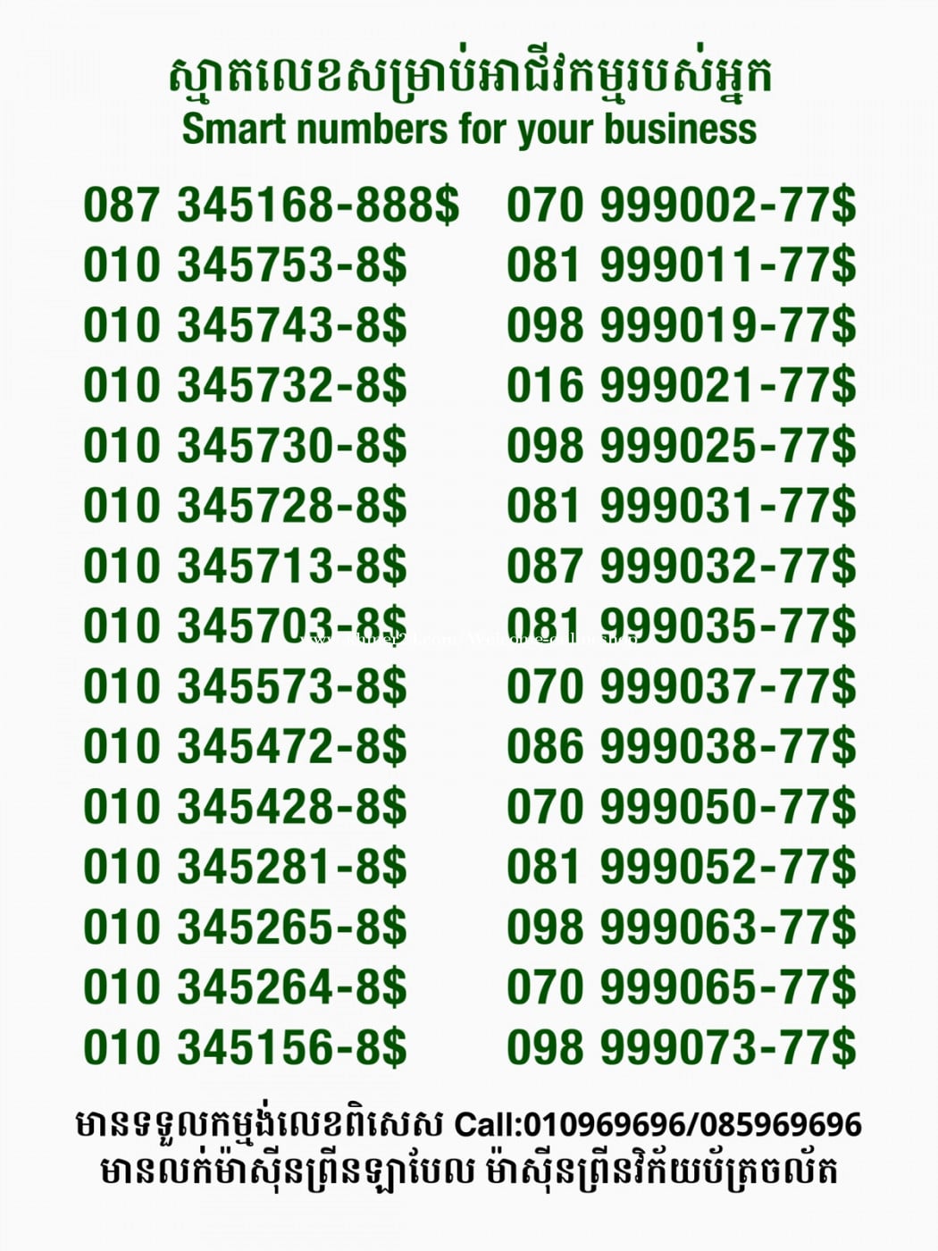 មានលក់លេខពិសេស មានទទួលកម្មង់លេខពិសេស មានលក់ម៉ាស៊ីនព្រីនឡាបែលចល័ត មានលក់ម៉ាស៊ីនព្រីនវិក័យប័ត្រចល័ត មានលក់សម្ភារៈប្រើប្រាស់ក្នុងគ្រួសារ Smart Prime II 1=30$ Smart hero 1=40$ ទូរសព្ទថ្មីក្នុងប្រអប់ លក់ធូរៗរហូតអស់ពីស្តុក អាចប្រើជាឧបករណ៍សម្រាប់ស៊ែរ wifi បាន ទំនាក់ទំនង(ខ្មែរ | English | 中文):010969696 | 085969696 Telegram: https://t.me/W9696 Telegram group: https://t.me/konkonnada អាសយដ្ឋាន:ផ្ទះលេខ២៣ ផ្លូវបេតុងលេខ១ ភូមិទួលពង្រ សង្កាត់ចោមចៅ ខណ្ឌពោធិ៍សែនជ័យ រាជធានីភ្នំពេញ ទីតាំង https://goo.gl/maps/8moqW4iTHUfJEvWQ9 ដើម្បីស្វែងរកលេខអាជីវកម្មដែលលោកអ្នកពេញចិត្ត សូមចូលទៅកាន់:https://www.khmer24.com/Welcome-onlineshop