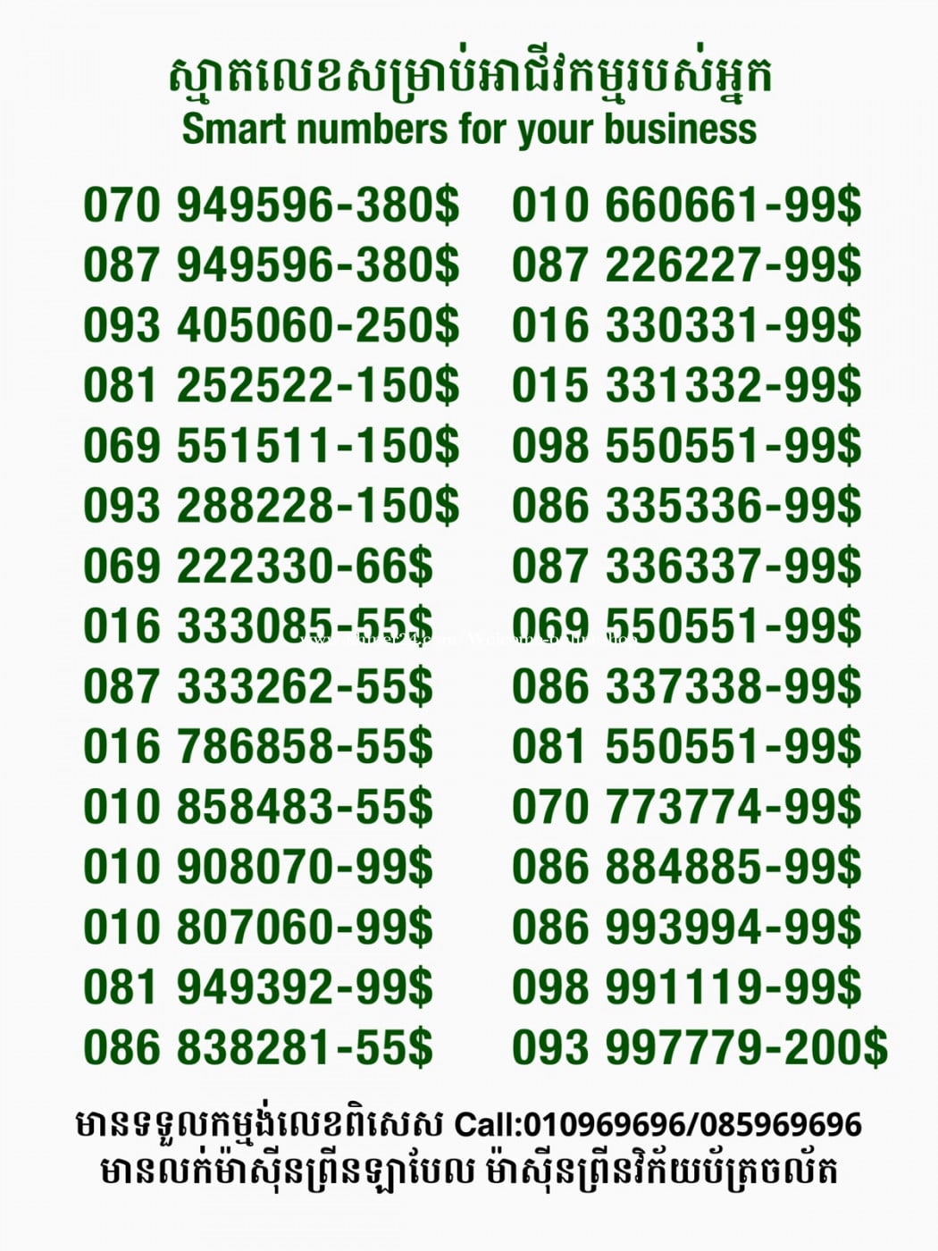 មានលក់លេខពិសេស មានទទួលកម្មង់លេខពិសេស មានលក់ម៉ាស៊ីនព្រីនឡាបែលចល័ត មានលក់ម៉ាស៊ីនព្រីនវិក័យប័ត្រចល័ត មានលក់សម្ភារៈប្រើប្រាស់ក្នុងគ្រួសារ Smart Prime II 1=30$ Smart hero 1=40$ ទូរសព្ទថ្មីក្នុងប្រអប់ លក់ធូរៗរហូតអស់ពីស្តុក អាចប្រើជាឧបករណ៍សម្រាប់ស៊ែរ wifi បាន ទំនាក់ទំនង(ខ្មែរ | English | 中文):010969696 | 085969696 Telegram: https://t.me/W9696 Telegram group: https://t.me/konkonnada អាសយដ្ឋាន:ផ្ទះលេខ២៣ ផ្លូវបេតុងលេខ១ ភូមិទួលពង្រ សង្កាត់ចោមចៅ ខណ្ឌពោធិ៍សែនជ័យ រាជធានីភ្នំពេញ ទីតាំង https://goo.gl/maps/8moqW4iTHUfJEvWQ9 ដើម្បីស្វែងរកលេខអាជីវកម្មដែលលោកអ្នកពេញចិត្ត សូមចូលទៅកាន់:https://www.khmer24.com/Welcome-onlineshop