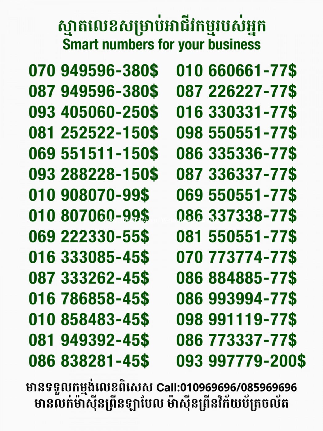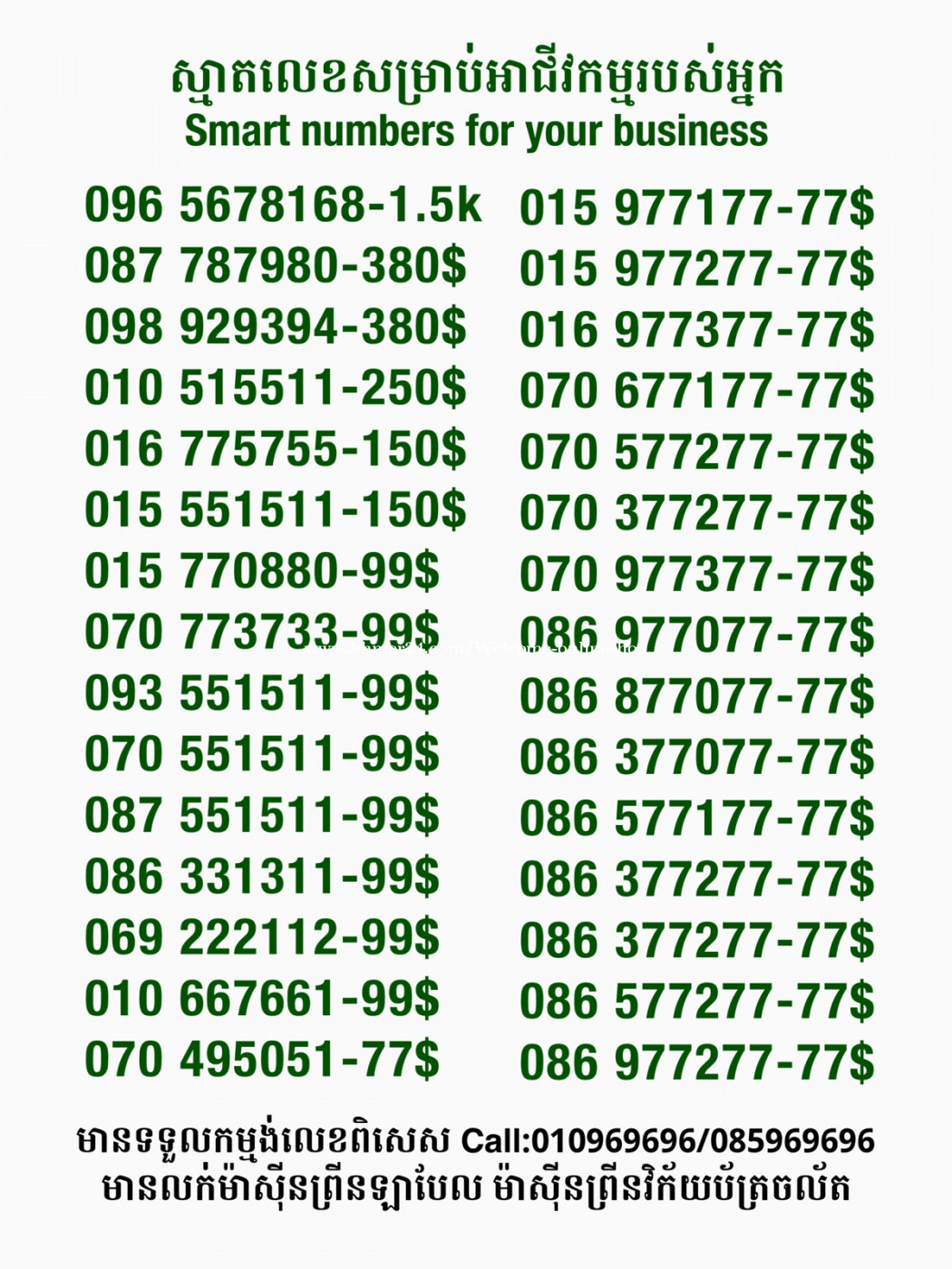 មានលក់លេខពិសេស មានទទួលកម្មង់លេខពិសេស មានលក់ម៉ាស៊ីនព្រីនឡាបែល មានលក់ម៉ាស៊ីនព្រីនវិក័យប័ត្រ មានលក់សម្ភារៈប្រើប្រាស់ក្នុងគ្រួសារ Smart Prime II 1=30$ Smart hero 1=40$ ទូរសព្ទថ្មីក្នុងប្រអប់ លក់ធូរៗរហូតអស់ពីស្តុក អាចប្រើជាឧបករណ៍សម្រាប់ស៊ែរ wifi បាន ទំនាក់ទំនង(ខ្មែរ | English | 中文):010969696 | 085969696 Telegram: https://t.me/W9696 Telegram group: https://t.me/konkonnada អាសយដ្ឋាន:ផ្ទះលេខ២៣ ផ្លូវបេតុងលេខ១ ភូមិទួលពង្រ សង្កាត់ចោមចៅ ខណ្ឌពោធិ៍សែនជ័យ រាជធានីភ្នំពេញ ទីតាំង https://goo.gl/maps/8moqW4iTHUfJEvWQ9 ដើម្បីស្វែងរកលេខអាជីវកម្មដែលលោកអ្នកពេញចិត្ត សូមចូលទៅកាន់:https://www.khmer24.com/Welcome-onlineshop