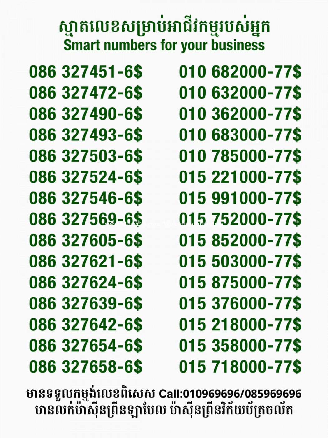 មានលក់លេខពិសេស មានទទួលកម្មង់លេខពិសេស មានលក់ម៉ាស៊ីនព្រីនឡាបែល មានលក់ម៉ាស៊ីនព្រីនវិក័យប័ត្រ មានលក់សម្ភារៈប្រើប្រាស់ក្នុងគ្រួសារ Smart Prime II 1=30$ Smart hero 1=40$ ទូរសព្ទថ្មីក្នុងប្រអប់ លក់ធូរៗរហូតអស់ពីស្តុក អាចប្រើជាឧបករណ៍សម្រាប់ស៊ែរ wifi បាន ទំនាក់ទំនង(ខ្មែរ | English | 中文):010969696 | 085969696 Telegram: https://t.me/W9696 Telegram group: https://t.me/konkonnada អាសយដ្ឋាន:ផ្ទះលេខ២៣ ផ្លូវបេតុងលេខ១ ភូមិទួលពង្រ សង្កាត់ចោមចៅ ខណ្ឌពោធិ៍សែនជ័យ រាជធានីភ្នំពេញ ទីតាំង https://goo.gl/maps/8moqW4iTHUfJEvWQ9 ដើម្បីស្វែងរកលេខអាជីវកម្មដែលលោកអ្នកពេញចិត្ត សូមចូលទៅកាន់:https://www.khmer24.com/Welcome-onlineshop