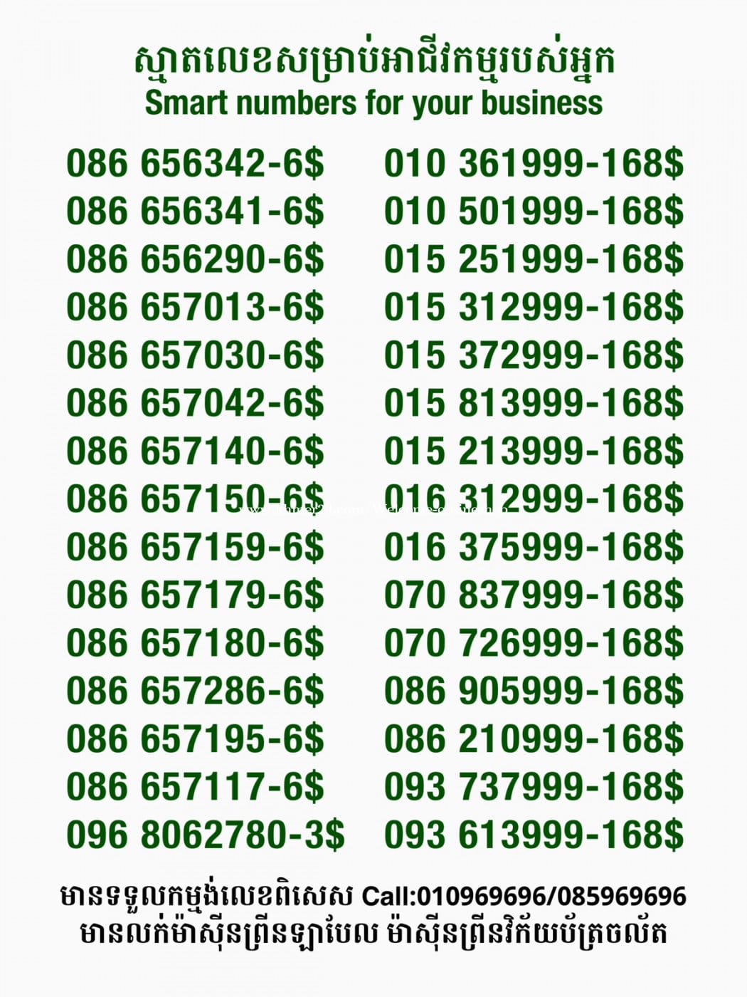 មានលក់លេខពិសេស មានទទួលកម្មង់លេខពិសេស មានលក់ម៉ាស៊ីនព្រីនឡាបែល មានលក់ម៉ាស៊ីនព្រីនវិក័យប័ត្រ មានលក់សម្ភារៈប្រើប្រាស់ក្នុងគ្រួសារ Smart Prime II 1=30$ Smart hero 1=40$ ទូរសព្ទថ្មីក្នុងប្រអប់ លក់ធូរៗរហូតអស់ពីស្តុក អាចប្រើជាឧបករណ៍សម្រាប់ស៊ែរ wifi បាន ទំនាក់ទំនង(ខ្មែរ | English | 中文):010969696 | 085969696 Telegram: https://t.me/W9696 Telegram group: https://t.me/konkonnada អាសយដ្ឋាន:ផ្ទះលេខ២៣ ផ្លូវបេតុងលេខ១ ភូមិទួលពង្រ សង្កាត់ចោមចៅ ខណ្ឌពោធិ៍សែនជ័យ រាជធានីភ្នំពេញ ទីតាំង https://goo.gl/maps/8moqW4iTHUfJEvWQ9 ដើម្បីស្វែងរកលេខអាជីវកម្មដែលលោកអ្នកពេញចិត្ត សូមចូលទៅកាន់:https://www.khmer24.com/Welcome-onlineshop