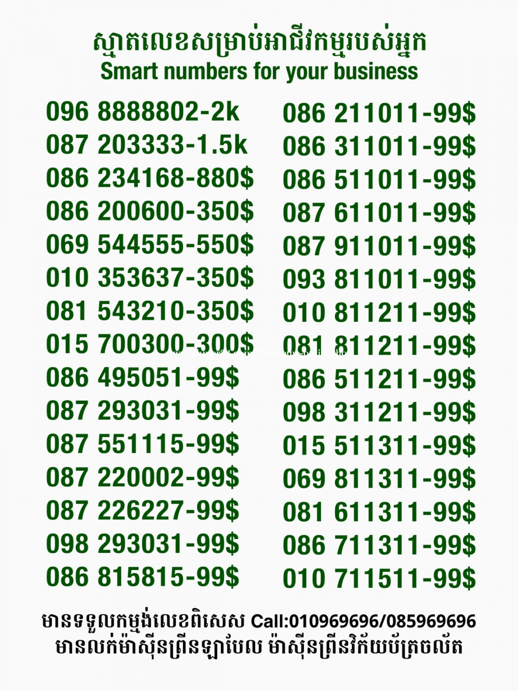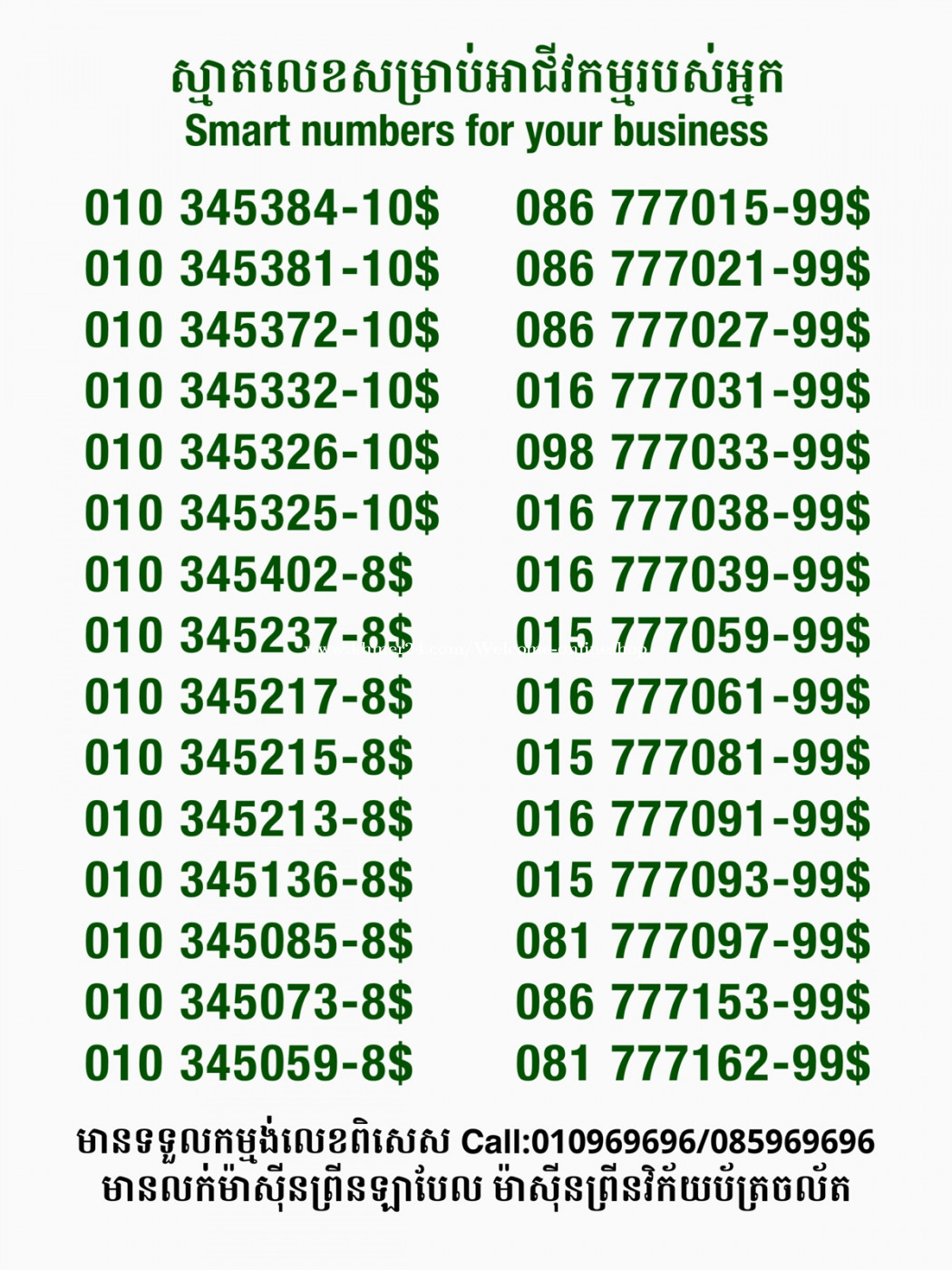 មានលក់លេខពិសេស មានទទួលកម្មង់លេខពិសេស មានលក់ម៉ាស៊ីនព្រីនឡាបែលចល័ត មានលក់ម៉ាស៊ីនព្រីនវិក័យប័ត្រចល័ត មានលក់សម្ភារៈប្រើប្រាស់ក្នុងគ្រួសារ Smart Prime II 1=30$ Smart hero 1=40$ ទូរសព្ទថ្មីក្នុងប្រអប់ លក់ធូរៗរហូតអស់ពីស្តុក អាចប្រើជាឧបករណ៍សម្រាប់ស៊ែរ wifi បាន ទំនាក់ទំនង(ខ្មែរ | English | 中文):010969696 | 085969696 Telegram: https://t.me/W9696 Telegram group: https://t.me/konkonnada អាសយដ្ឋាន:ផ្ទះលេខ២៣ ផ្លូវបេតុងលេខ១ ភូមិទួលពង្រ សង្កាត់ចោមចៅ ខណ្ឌពោធិ៍សែនជ័យ រាជធានីភ្នំពេញ ទីតាំង https://goo.gl/maps/8moqW4iTHUfJEvWQ9 ដើម្បីស្វែងរកលេខអាជីវកម្មដែលលោកអ្នកពេញចិត្ត សូមចូលទៅកាន់:https://www.khmer24.com/Welcome-onlineshop