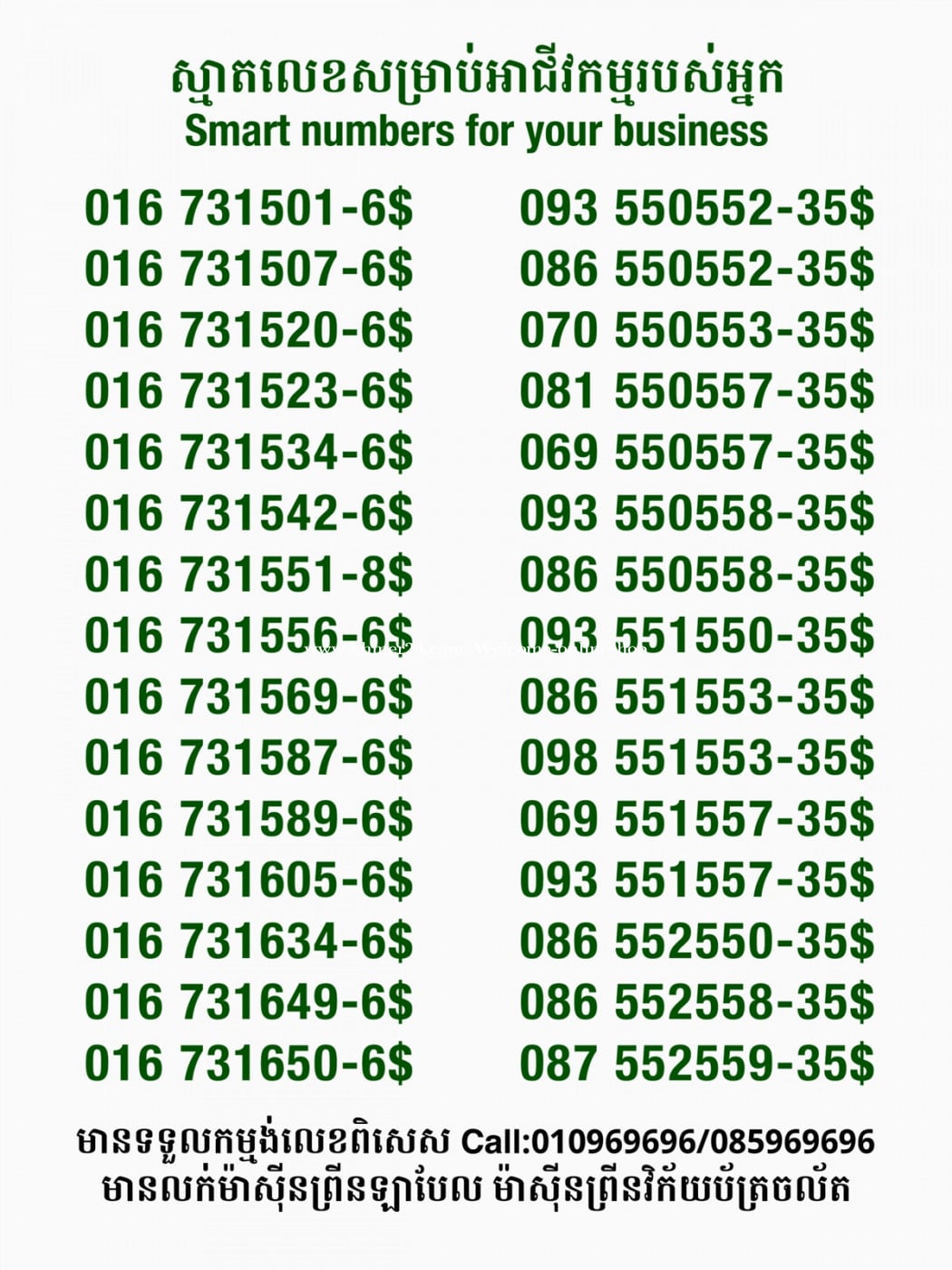 មានលក់លេខពិសេស មានទទួលកម្មង់លេខពិសេស មានលក់ម៉ាស៊ីនព្រីនឡាបែលចល័ត មានលក់ម៉ាស៊ីនព្រីនវិក័យប័ត្រចល័ត មានលក់សម្ភារៈប្រើប្រាស់ក្នុងគ្រួសារ Smart Prime II 1=30$ Smart hero 1=40$ ទូរសព្ទថ្មីក្នុងប្រអប់ លក់ធូរៗរហូតអស់ពីស្តុក អាចប្រើជាឧបករណ៍សម្រាប់ស៊ែរ wifi បាន ទំនាក់ទំនង(ខ្មែរ | English | 中文):010969696 | 085969696 Telegram: https://t.me/W9696 Telegram group: https://t.me/konkonnada អាសយដ្ឋាន:ផ្ទះលេខ២៣ ផ្លូវបេតុងលេខ១ ភូមិទួលពង្រ សង្កាត់ចោមចៅ ខណ្ឌពោធិ៍សែនជ័យ រាជធានីភ្នំពេញ ទីតាំង https://goo.gl/maps/8moqW4iTHUfJEvWQ9 ដើម្បីស្វែងរកលេខអាជីវកម្មដែលលោកអ្នកពេញចិត្ត សូមចូលទៅកាន់:https://www.khmer24.com/Welcome-onlineshop