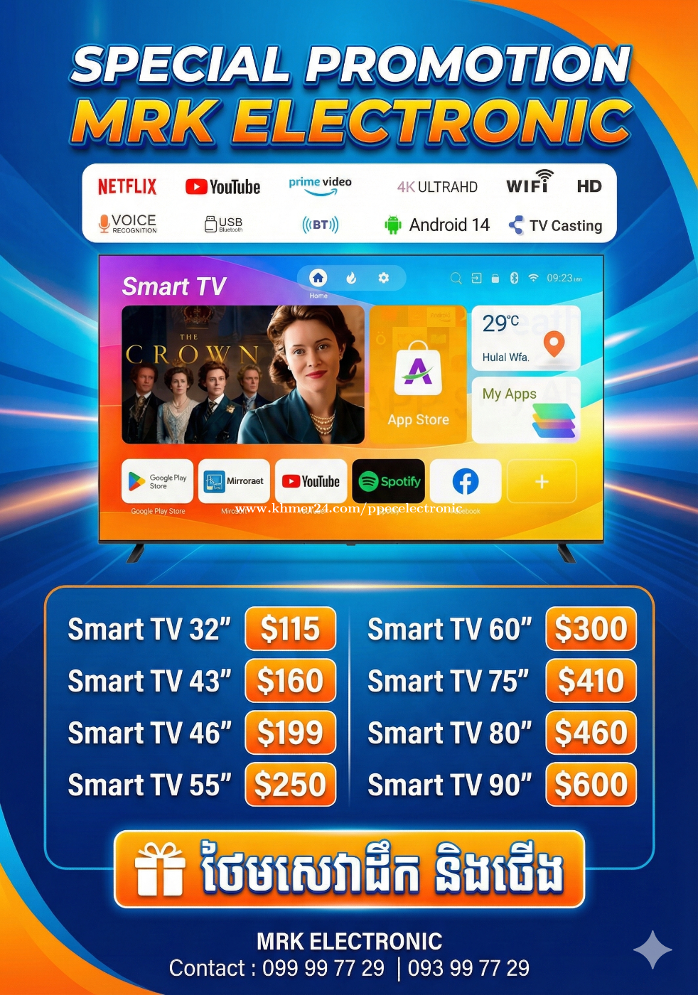 Smart TV ថ្មី ធានារយះពេល១ឆ្នាំ ផលិតផលសាំងហ្គា តម្លៃនេះមានត្រឹមតែ ៥គ្រឿងប៉ុណ្ណោះ ។ កុំអោយឲកាសកន្លងផុតទៅ តម្លៃពិសេសនិងថែមសេវាដឹក និង ជើងចាប់ជញ្ជាំងសម្រាប់ទីតាំងភ្នំពេញ ។ ផ្នែកលក់ 099997xxxClick To Call | 093997xxxClick To Call Telegram : https://t.me/mrkelectronic