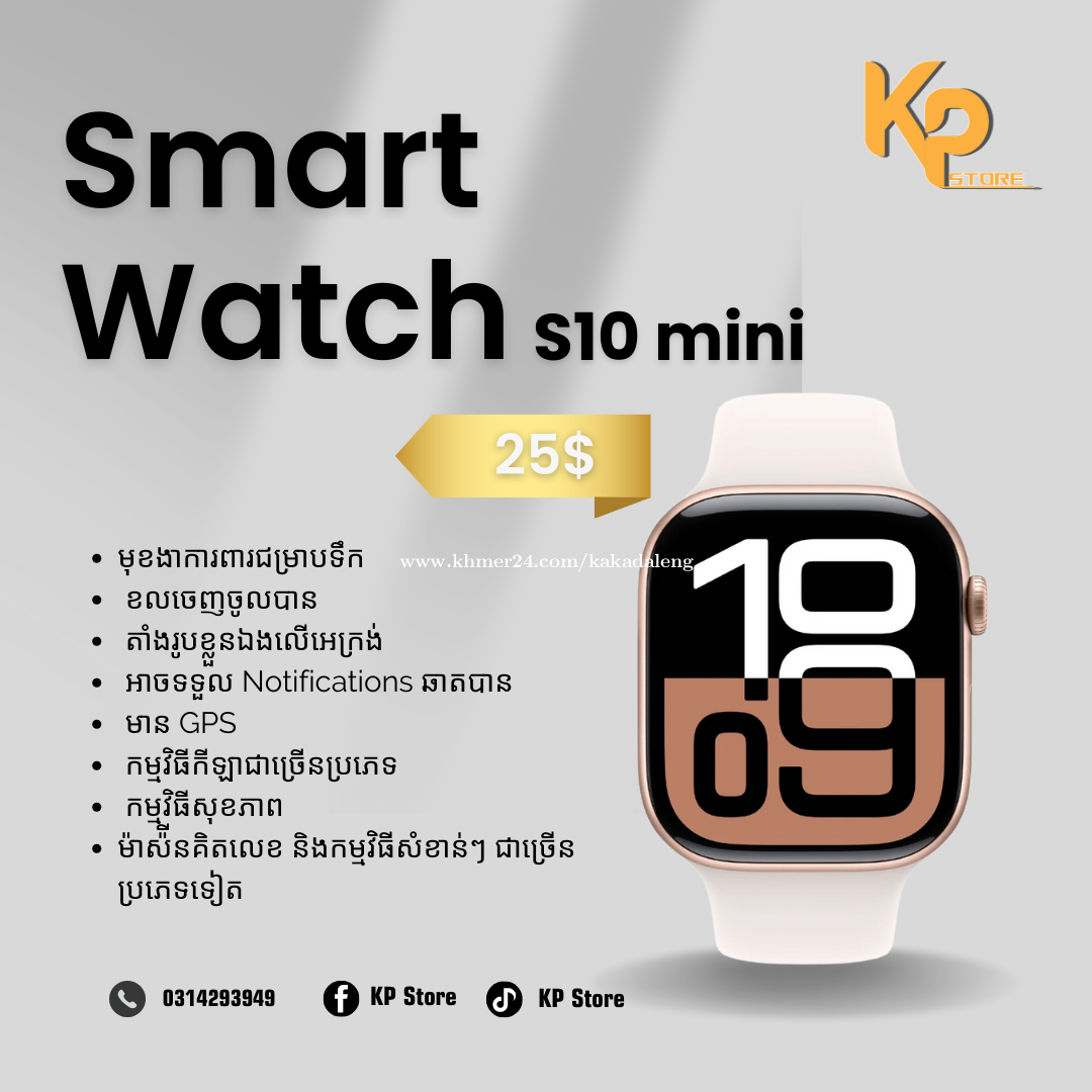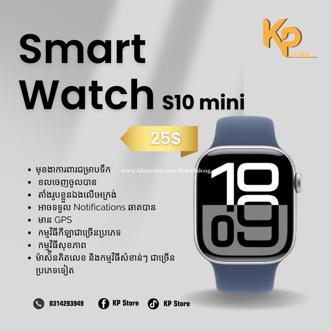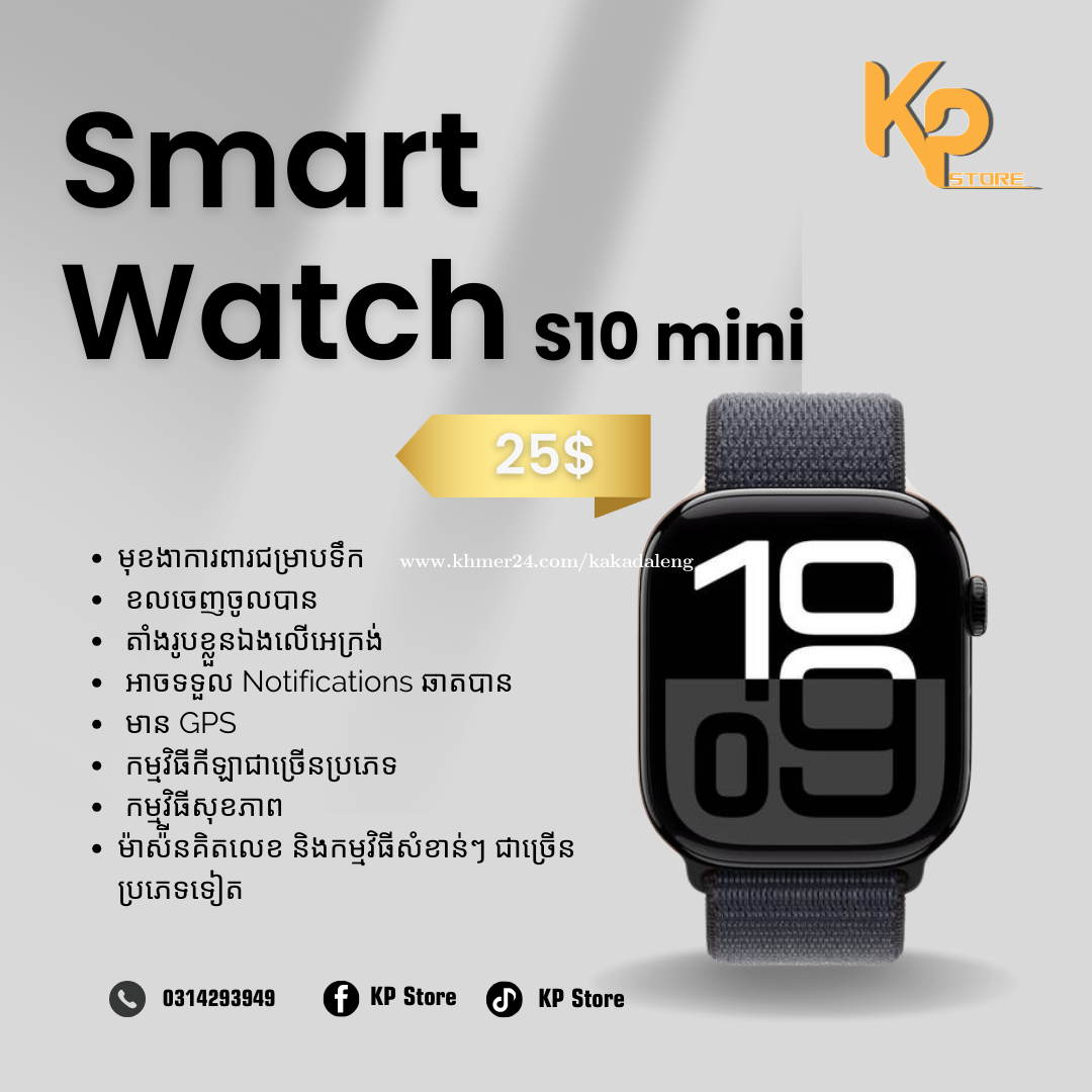 Smart Watch S10mini Size 42mm មានអេក្រង់ Smooth ល្អ មានកម្មវិធីប្រើប្រាស់ច្រើន គុណភាពខ្ពស់ 🌟 👉 មុខងាការពារជម្រាបទឹក 👉 ខលចេញចូលបាន 👉 តាំងរូបខ្លួនឯងលើអេក្រង់ 👉 អាចទទួល Notifications ឆាតបាន 👉🏻 មាន GPS 👉 កម្មវិធីកីឡាជាច្រើនប្រភេទ 👉 កម្មវិធីសុខភាព 👉🏻មាន sensor គ្រលាស់ដៃទៅភ្លឺ អាចមើលម៉ោង បាន 👉 ម៉ាស៉ីនគិតលេខ និងកម្មវិធីសំខាន់ៗ ជាច្រើនប្រភេទទៀត… #នាឡិកា #នាឡិកាដៃ #នាឡិកាបុរស #នាឡិកាដៃនារី