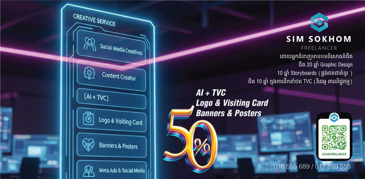 50% ទទួលធ្វើ និងបង្រៀន (វីដេអូ ពាណិជ្ជកម្ម) Ai TVC Production