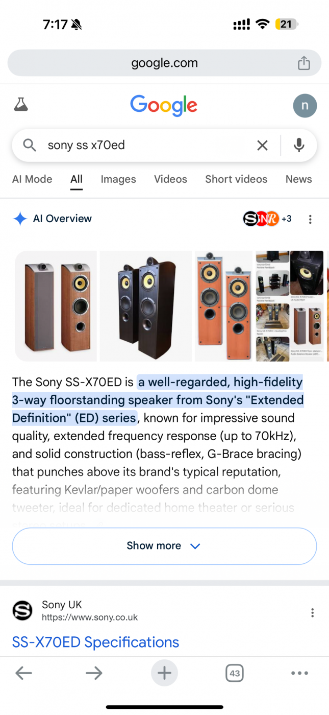 Sony SS-X70ED https://www.sony.com/electronics/support/res/manuals/4238/42386001M.pdf តម្លៃ $250 ដាច់