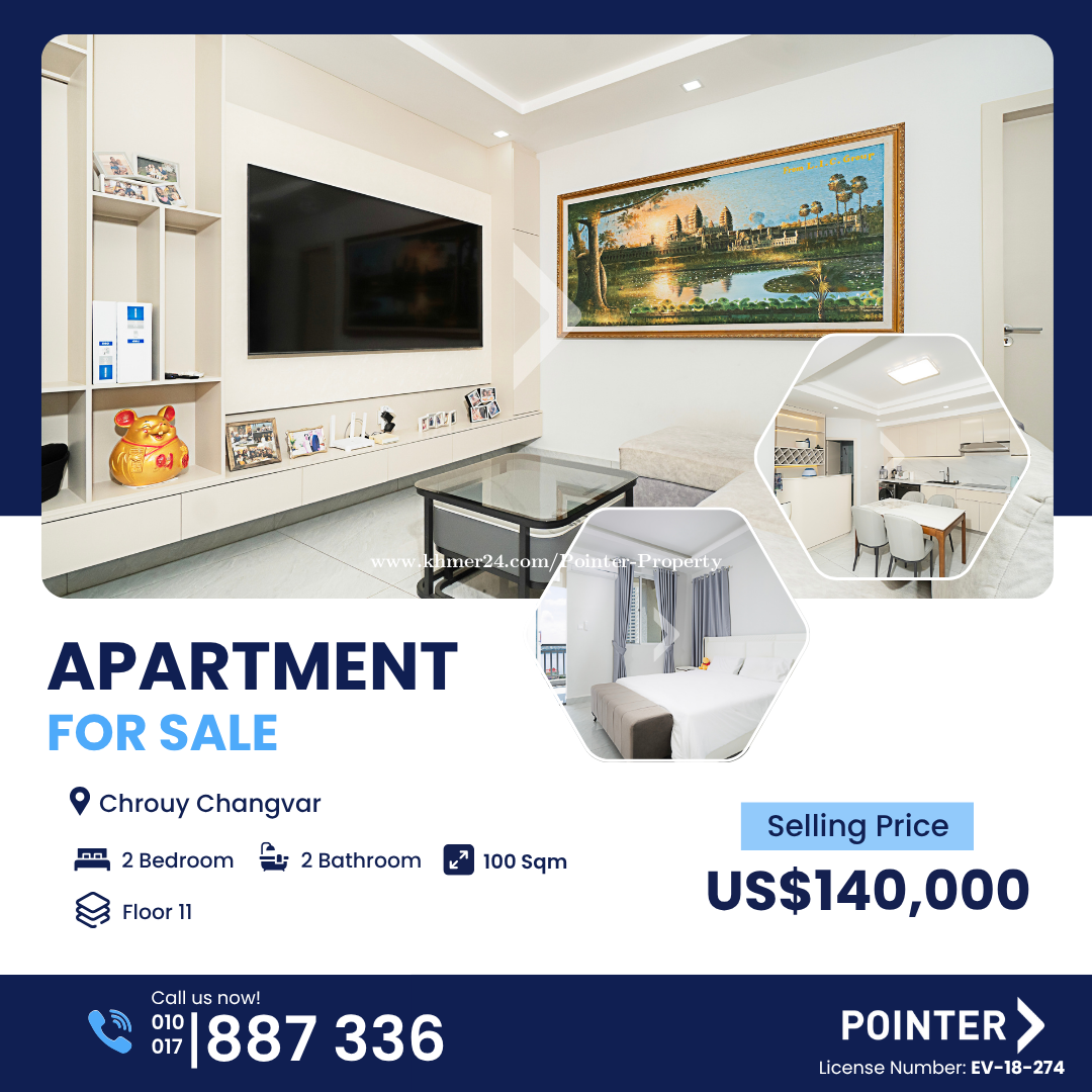 โจLocated in Sangkat Chrouy Changva, this modern 2-bedroom condominium offers a comfortable 100 sqm of stylish living space with stunning views of the Tonle Mekong River. The unit is fully furnished with contemporary furniture and features a spacious living area, a sleek kitchen, and two well-designed bedrooms. ๐ธSelling Price: US$140,000 (Nego) ๐ 2-Bedroom ๐ 2-Bathroom ๐ 100mยฒ ๐น Fully furnished ๐น Cleaning 1 time/week ๐น 24/7 CCTV and security guards ๐น Includes pool ๐น Electricity Fee: US$0.25/kWh ๐น Water Fee: US$0.30/m3 ๐For more information or to schedule an inspection, please reach out to us via: ๐ฑ Our Hotline +8551088xxxClick To Call6 ๐ฑ OR WhatsApp/telegram +8551788xxxClick To Call6 ๐ Telegram: t.me/pointerproperty ๐Property code: CND-000450 ๐Link to property:โ https://pointerasia.com/property/2-bedroom-condo-for-sale-in-chrouy-changva-1314?fbclid=IwY2xjawLq7x9leHRuA2FlbQIxMABicmlkETEyN0k0aWwzUUFsdUtTaEFaAR42t3y5BXEsygfI2YW3BfXrtNlTS0xqX_e_yCwQGig7_2WRHATHAcmO077gww_aem_FG6MJ0NNwOVXYqFoAf7kUA