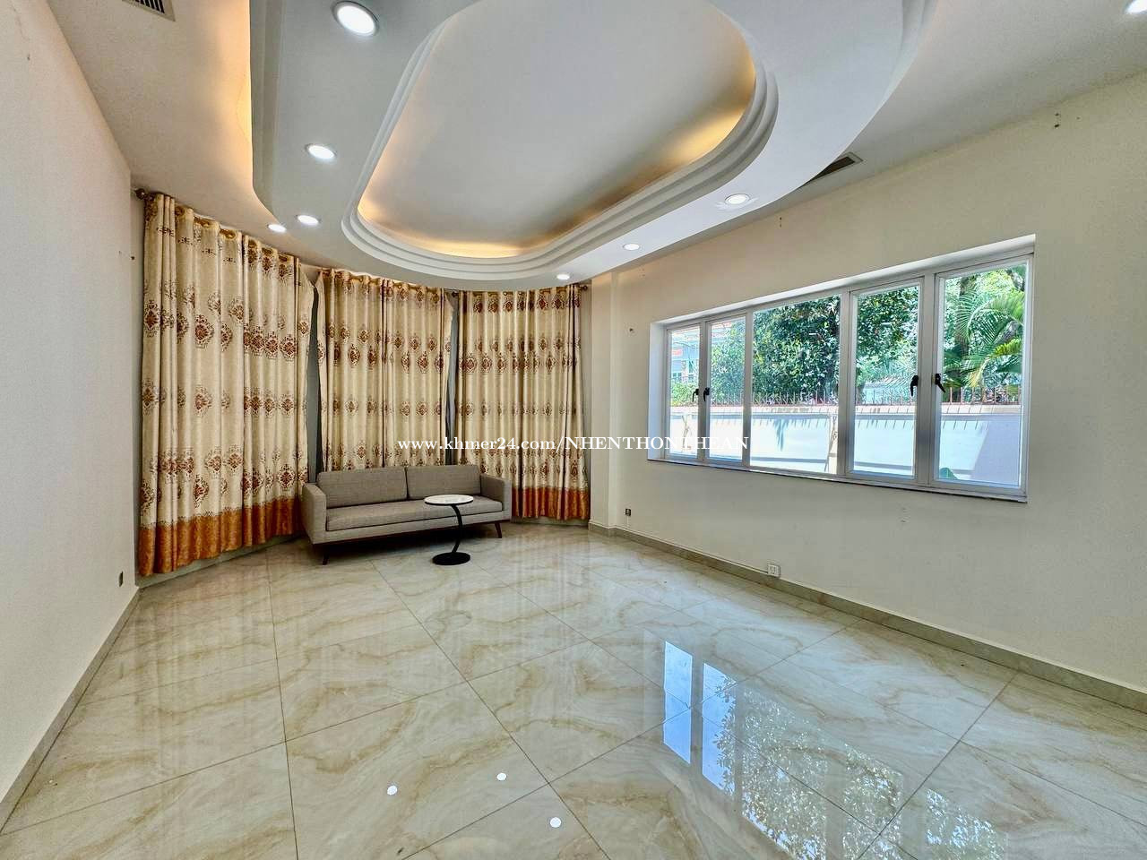 Spacious Villa 4 Bedroom For Rent in Tonle Bassac Area. Price: $4500 per month Bedroom:05 Bathroom:06 Furniture: fully furnished It is very good for living and office safe area no flooding ans not far from Naga world, CIS, Independence Monument.