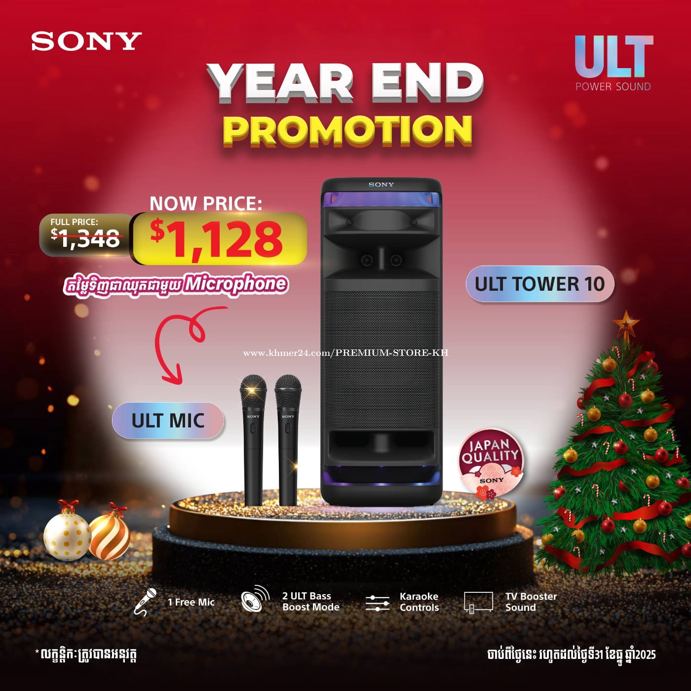 Sony ULT TOWER 10 លក្ខណៈពិសេស៖ 🎤 1 ម៉ាយក្រូហ្វូនឥតគិតថ្លៃ (Free Mic) 🎚️ Karaoke Controls – អាចគ្រប់គ្រងសម្លេង Karaoke ឲ្យសមរម្យ 🔊 2 ULT Bass Boost Mode – បន្ថែមថាមពល Bass ឲ្យសម្លេងដាច់ច្បាស់ និងខ្លាំងជាងមុន 📺 TV Booster Sound – បង្កើនគុណភាពសម្លេងពេលភ្ជាប់ជាមួយទូរទស្សន៍ 🏅 Japan Quality – ផលិតផលគុណភាពខ្ពស់ពីជប៉ុន ទំនាក់ទំនងខល 017555xxxClick To Call