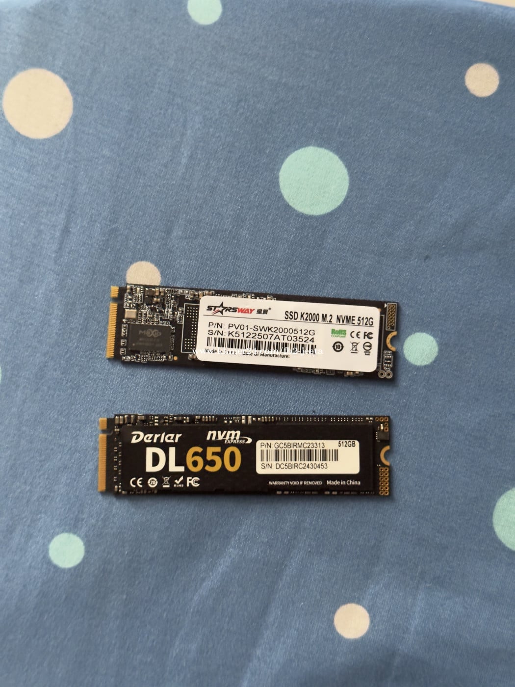STARSWAY SSD K2000 M.2 NVMe 512GB លក់តម្លៃ 35$ (ចរចា) Dater DL650 NVMe 512GB តម្លៃ 25$ (ចរចា) បើយកទាំងពីរ តម្លៃត្រឹមតែ 55$ តែប៉ុណ្ណោះ