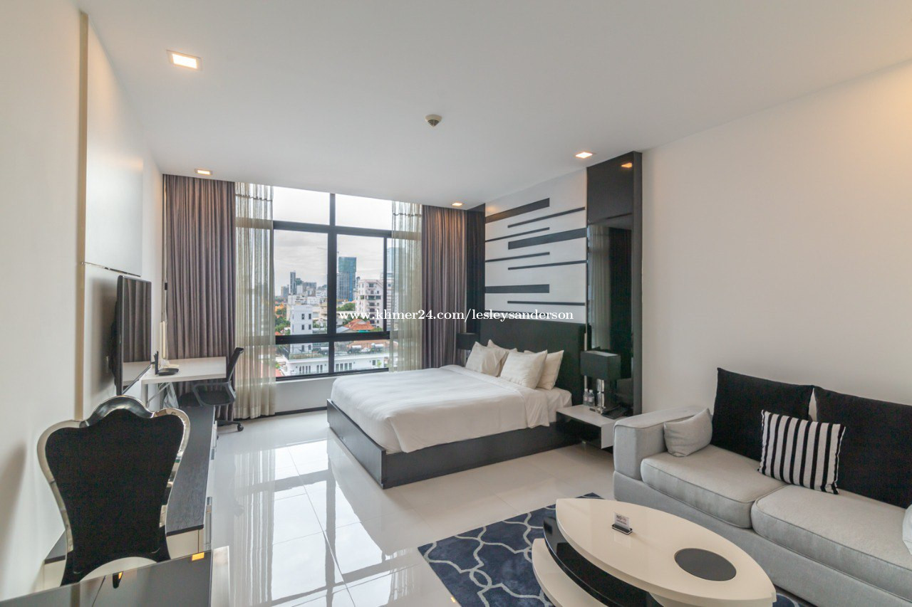 Property Detail - Unit Type: Studio, 1bathroom with bathtub -Size 50sqm - Available floor: 02nd to 10th floor -Monthly Price: $ 1,178 *Service Included: • Cable TV (1 in living room and 1 in master bedroom) • Fully equipped kitchen • Iron/ironing board • Safe deposit box • Washing machine • Dining table with chairs • Management Fee • Daily newspaper – available at the lobby • Access to fitness equipment with modern and professional gym, pool, steam and sauna • Access to kid playground. • WIFI internet • Cleaning and change linens 2 times per week • Water supply • Lift maintenance • Building maintenance * Service Excluded: • Telephone IDD • Electricity usage ($0.25 per kilowatt) • Rooftop sky bar