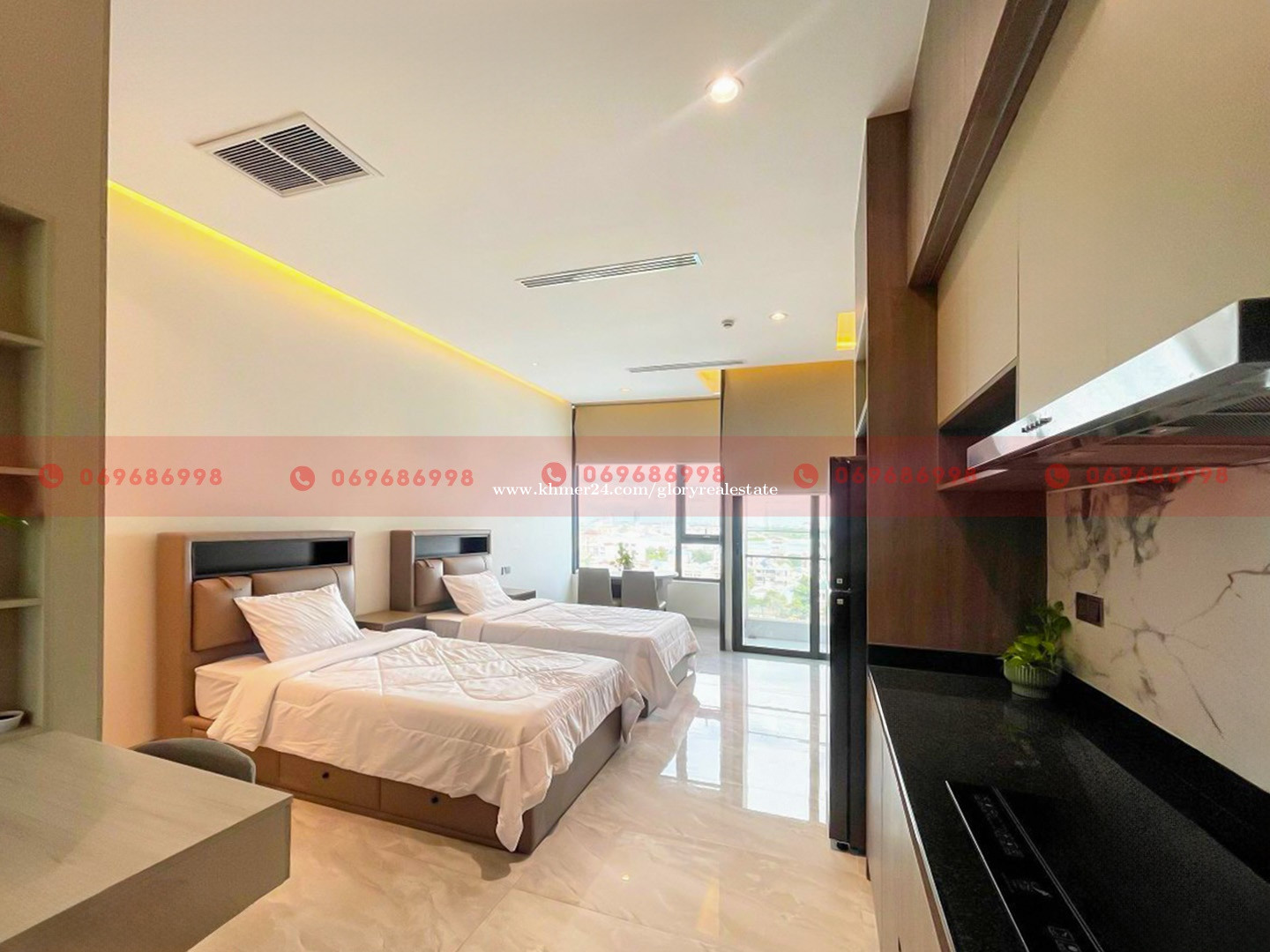 This modern studio serviced apartment is now available for lease in the Phnom Penh Thmey area, conveniently located near AEON Mall Sen Sok City. Fully furnished and well-managed, the property offers comfort and convenience in a prime residential location. Property Overview: - Room size: 38 sqm - Bathroom: 1 - Kitchen: 1 kitchen with dining area - Furnishings: Fully furnished Inclusions: - Free parking - Swimming pool and gym Exclusions: - Electricity: USD 0.25 per kWh - Water: USD 5 per person Suitable For: This studio room is ideal for single professionals, business travelers, expatriates, consultants, or individuals seeking comfortable, serviced living close to shopping, dining, and business facilities. ๐ Property ID: GP-61267 For more information or to schedule a viewing, please donโt hesitate to contact us. ๐ฒ Call: 069686xxxClick To Call/099688xxxClick To Call ๐ฌ Telegram: https://t.me/glorycam ๐ฌ WhatsApp: https://wa.me/+85569686998 ๐ฌ WeChat: gloryrealestate ๐ง Email: con****@glorycambodia.comClick To Sent Email