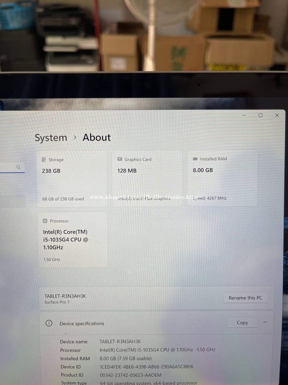 Model: Surface Pro7 ទើបកាត់ពីភ្ញៀវ CPU: i5-1035G4 Ram: 8GB SSD: 256GB Display: 12-inches Resolution: 2k Warranty: 1month Price: 349$ ————————— ហាងយើងខ្ញុំមាន ទិញ លក់ ជួសជុល វៃដូរ គ្រឿងអេឡិចត្រូនិច ថ្មីនិងមួយទឹកគ្រប់ប្រភេទ ទំនុកចិត្ត គុណភាព ទំនួលខុសត្រូវ តម្លៃក្រោមទីផ្សារ ទំនាក់ទំនង Smart:093605xxxClick To Call/Cell card:0764000xxxClick To Call ទីតាំងហាង: ផ្ទះលេខ១៧៩ ផ្លូវលេខ១១ ក្នុងបុរីពិភពថ្មីកួរស្រូវ២ ភូមិក្រាំងស្វាយ សង្កាត់ព្រែកកំពឹស ខណ្ឌដង្កោ រាជធានីភ្នំពេញ ផែនទី https://maps.app.goo.gl/J9U8YEJ7TzLnvXMZ9 Telegram: https://t.me/Electronicsking2023
