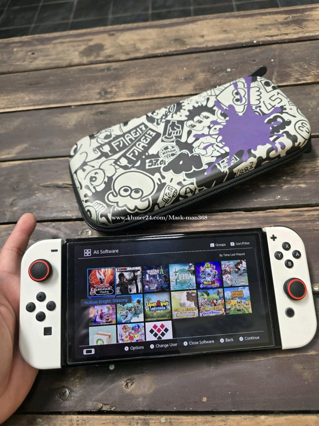Switch OLED JB 256G ស្អាត99%សំណុំ មានតែម៉ាស៊ីនឆ្នាំងសាកស៊ីននិងកាបូប