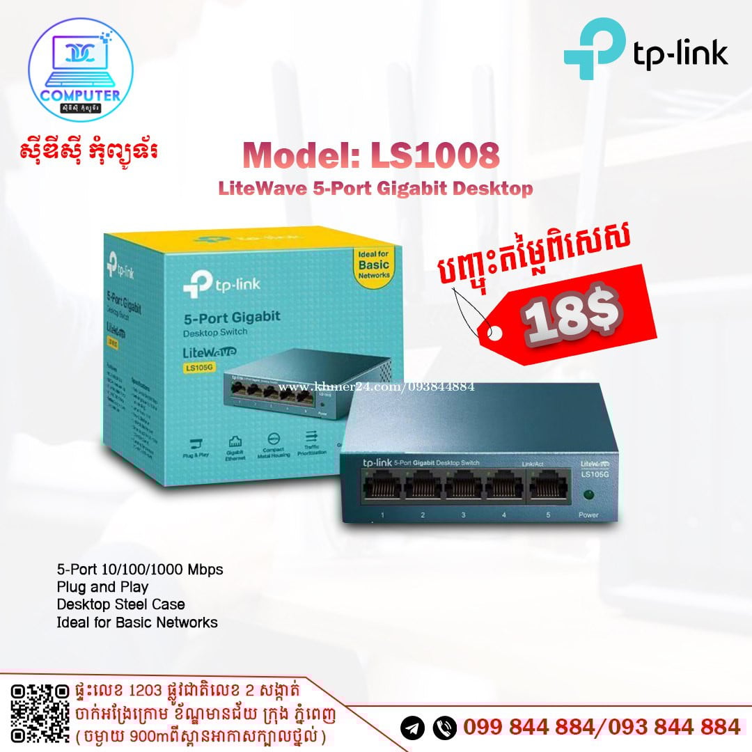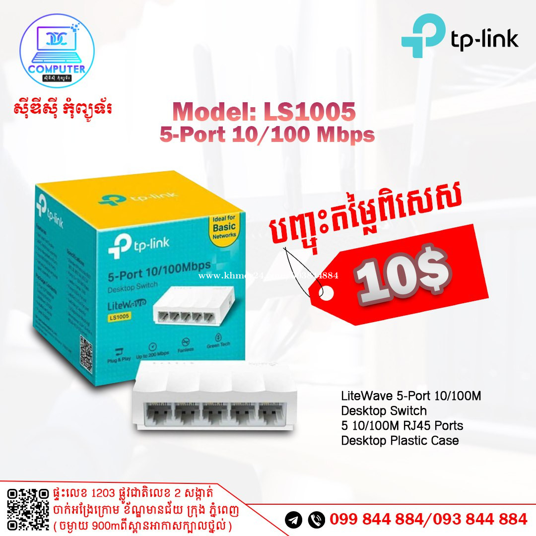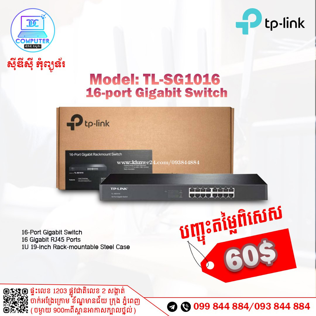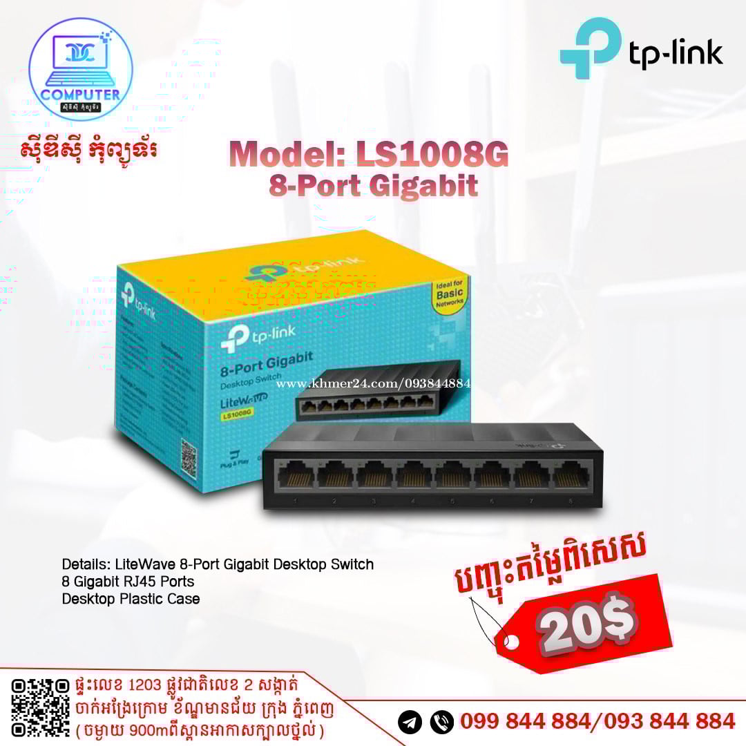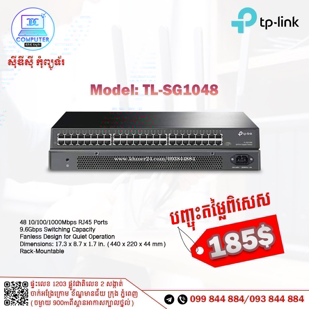 Switch TP-Link មានចាប់ពី 4port ដល់ 48port ! 💯 អតិថិជនអាចអញ្ញើញមកផ្ទាល់ដល់ទីតាំងហាងបានទំនិញមានស្រាប់មិនបាច់រង់ចាំយូរ ! ☎️ទូរស័ព្ទលេខ : 093844xxxClick To Call / 099844xxxClick To Call 📬Telegram : t.me/CDCCOMPUTER093 🏠ទីតាំងហាង : ផ្ទះលេខ 1203 ផ្លូវជាតិលេខ2 , ចាក់អង្រែលើ , ខ័ណ្ឌមានជ័យ , ភ្នំពេញ ( ចំងាយ 900m ពីស្ពានអាកាសក្បាលថ្នល់ ) 📍 Google map : https://maps.app.goo.gl/R3W9thPP5omgsMaZA