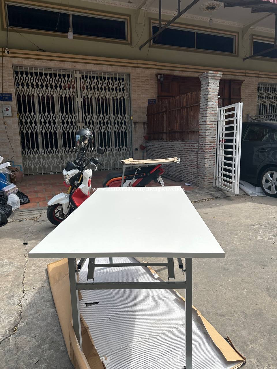 Office table able fold available in stock - new100% 💯 - price 65$ - have size 1.5mx80cmH75cm - have size 1.8mx75cmH75cm - buy 2 table free delivery in Phnom Penh city - order now delivery now 🚚 - Tell:086564xxxClick To Call - interested can contact :https://t.me/jingjing2110
