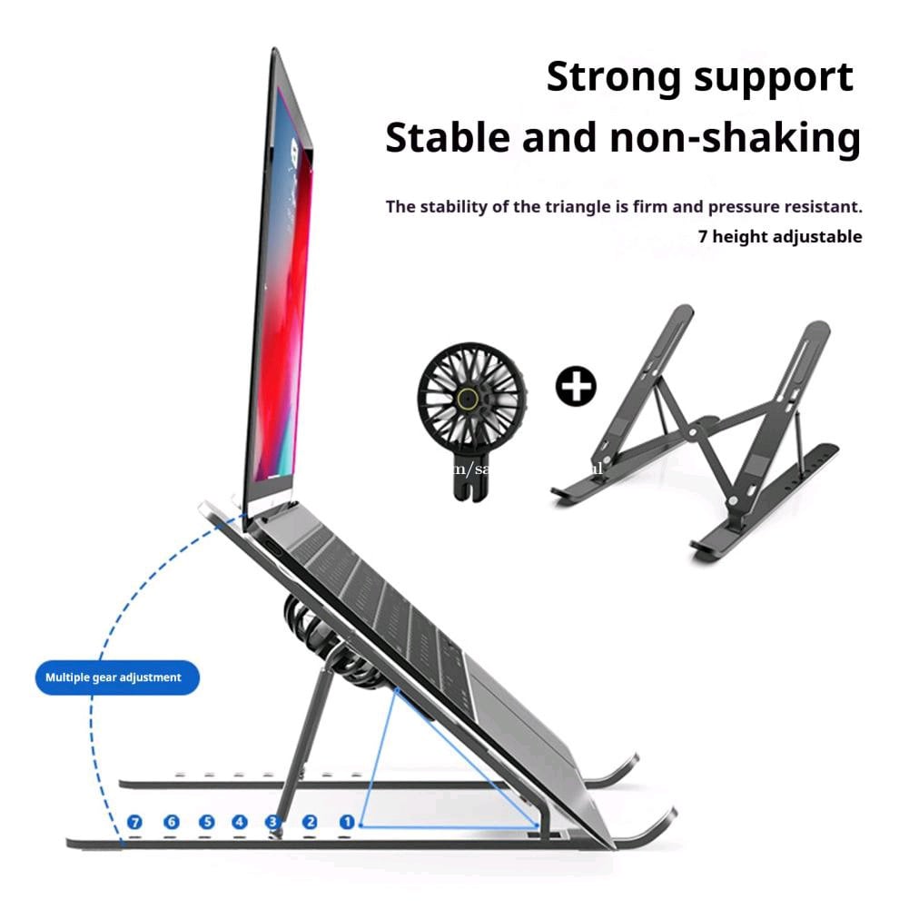 ជើងទម្រដែក ងាយស្រួលដាក់តាមខ្លួនមាន ទាំងកង្ហាល់ មិនអោយlaptop ក្ដៅ❄️❄️ Tablet Stand Portable Laptop Stand with Fan Adjustable Height Notebook Holder for Stability Universal Computer Bracket for Desk Spec products : M02_K78 តម្លៃ Price: 12$ សូមទំនាក់ទំនងទិញ Sale: https://t.me/Mungkul077 Channel: https://t.me/blackholesstore Facebook: https://www.facebook.com/profile.php?id=61556326415298&mibextid=ZbWKwL