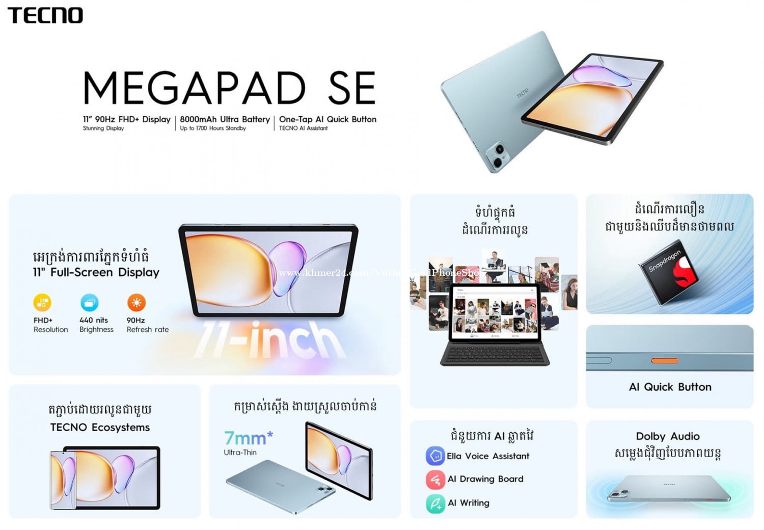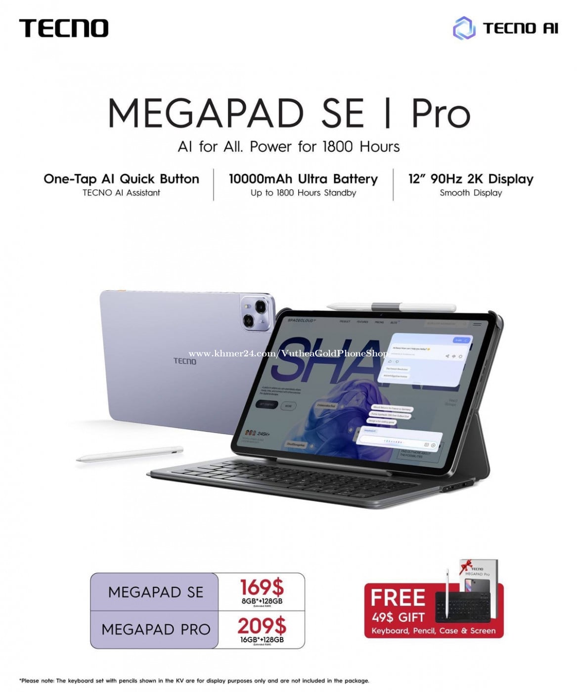 ចូលស្តុកថ្មី Tablet របស់ TECNO #ខ្លាំងជាងមុខ #ល្អជាងមុន 💥 ✔️TECNO MEGAPAD Pro 12” (RAM 8+8GB ROM 128GB) តម្លៃត្រឹមតែ $209 ✔️TECNO MEGAPAD SE 11” (RAM 4+4GB ROM 128GB) តម្លៃត្រឹមតែ $169 តែប៉ុណ្ណោះ 💬 Telegram Chat: https://t.me/vutheagold #TECNOMEGAPADPro #MEGAPADPro #AIForAllPowerFor1800Hours #TECNOMEGAPADSE