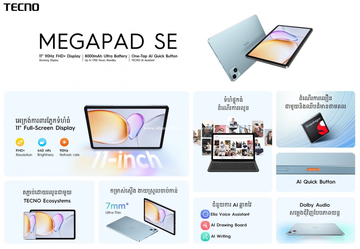 នេះជា TECNO MEGAPAD SE ម្ត្ណ្មានបំពាក់មុខងារ AI ដ៏ឆ្លាតវ័យជាច្រើនសម្រាប់ការសិក្សា និងការងារប្រចាំថ្ងៃ 🤩 គុណសម្បត្តិក៏ច្រើន តម្លៃក៏សមរម្យ 🤗 Ram 4G/128G Free gift box , pen and keyboard #TECNOMEGAPADSE #MEGAPADSE #AIForAll