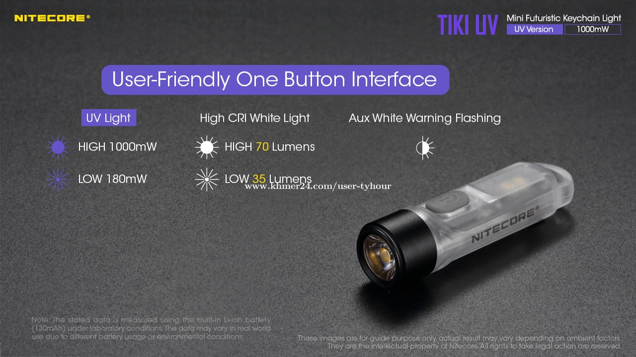 Max Output 1000 mW Max Runtime 2 h 0 m / 0.08 d LED Luminus SST-10-UV Special Modes Warning Flashing Beam color UV Light Length 55 mm / 2.17 in Head Size 14.7 mm / 0.58 in Weight 10.5 g / 0.37 oz Feature Rechargeable Activity Gear, Law Enforcement, Outdoor/Camping, High CRI Model, Gemstone Identification, EDC