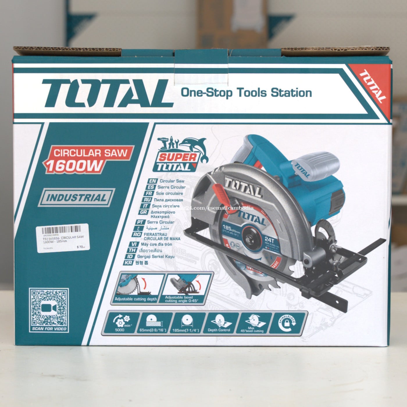 TOTAL Circular Saw 1600W 185mm (Industrial) (TS1161856) តម្លៃ: $72.80 សភាព: ថ្មី 100% ប្រភេទ: ម៉ាស៊ីនកាត់ឈើ / Circular Saw ម៉ាក: TOTAL ម៉ូដែល: Circular Saw 1600W 📝 ពណ៌នាផលិតផល TOTAL Circular Saw 1600W គឺជាម៉ាស៊ីនកាត់ឈើកម្លាំងខ្លាំង សម្រាប់ការកាត់ឈើ និងសម្ភារៈដែលពាក់ព័ន្ធនឹងឈើ។ បំពាក់ដោយម៉ូទ័រ 1600W កាត់បានលឿន និងមានភាពត្រឹមត្រូវ។ អាចកំណត់ជម្រៅកាត់ និងកាត់ជាមុំបាន (0–45°) ងាយស្រួលប្រើ និងមានសុវត្ថិភាព សាកសមសម្រាប់ការងារសំណង់ និងរោងជាង។ ⚙️ លក្ខណៈបច្ចេកទេស (Specifications) ប្រភេទ: Circular Saw កម្លាំងម៉ូទ័រ: 1600W អង្កត់ផ្ចិតឌីស: Ø185 mm (7-1/4”) ល្បឿនបង្វិល: 5000 rpm ជម្រៅកាត់អតិបរមា: 65 mm (90°) មុំកាត់: 0–45° (Bevel Cutting) ប្រភេទឌីស: TCT Saw Blade (24T – Wood) កម្រិតប្រើប្រាស់: Industrial 📦 អ្វីដែលមានក្នុងប្រអប់ ម៉ាស៊ីន TOTAL Circular Saw 1600W ឌីសកាត់ឈើ Ø185mm ដងណែនាំកាត់ត្រង់ (Guide Fence) ឧបករណ៍ដោះឌីស ប្រអប់ដើមពីរោងចក្រ ✅ អត្ថប្រយោជន៍ ម៉ូទ័រ 1600W កម្លាំងខ្លាំង កាត់បានលឿន កាត់បានត្រឹមត្រូវ និងស្អាត អាចកែជម្រៅ និងមុំកាត់បាន រចនារឹងមាំ សម្រាប់ការប្រើប្រាស់យូរ សុវត្ថិភាព និងងាយប្រើ 🏗️ សាកសមសម្រាប់ កាត់ឈើ និងបន្ទះឈើ ការងារសំណង់ រោងជាងឈើ អ្នកជាង និងការងារឧស្សាហកម្ម
