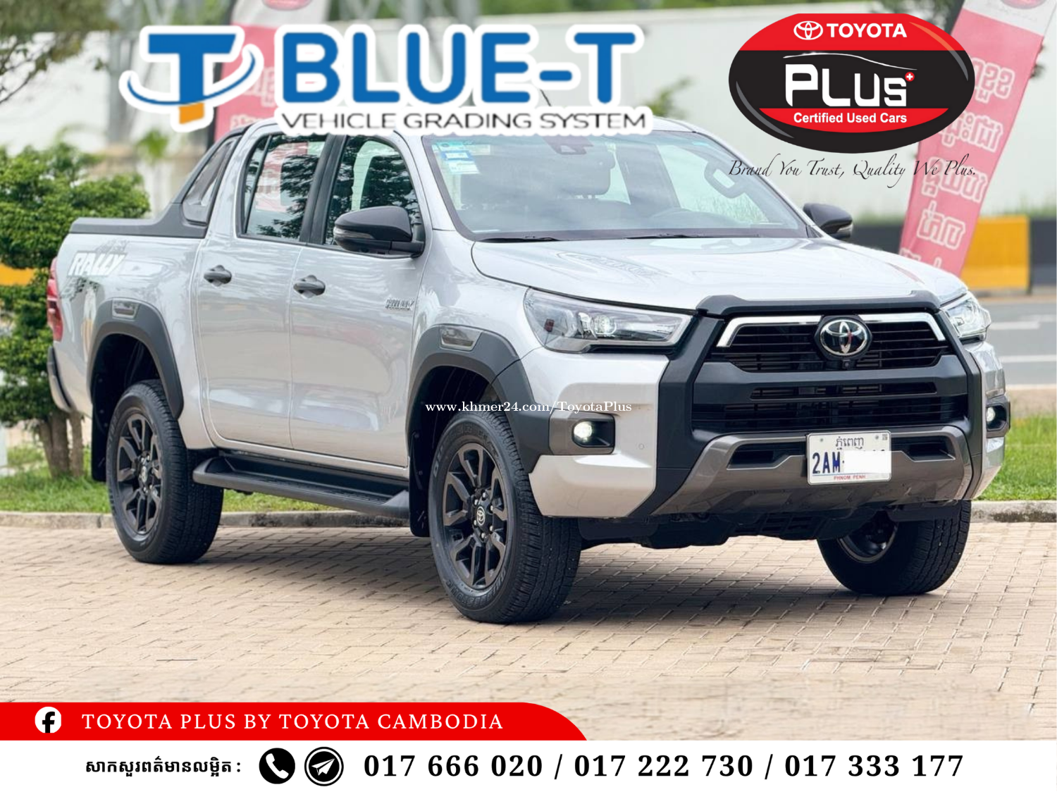 TOYOTA HILUX REVO RALLY 2024 តម្លៃ : 46,900$ ចរចាបាន ពត៌មានរថយន្ត : • ការផ្តល់ជូន : កាត់ឈ្មោះ និង ការធានា • ស្លាកលេខ : ភ្នំពេញ 2AM-XXXX • ចម្ងាយប្រើប្រាស់ : 21,553 KM • ពណ៌ : ទឹកប្រាក់ សេវាកម្មក្រុមហ៊ុនរួមមាន : ➡️ បង់រំលស់ជាមួយក្រុមហ៊ុនបង់មុនចាប់ពី 10% ដល់ 70% នៃតម្លៃឡាន រយៈពេលពី 1 » 6 ឆ្នាំ ➡️ ទិញដាច់ ដោះដូរគ្រប់ស៊េរីតាមតម្លៃទីផ្សារ សេវារហ័ស មិនស្មុគស្មាញ ☎️សាកសួរពត៌មានលម្អិតឥលូវនេះ : • Contact us via : 017666xxxClick To Call / 017333xxxClick To Call / 017222xxxClick To Call 📍តំណភ្ជាប់ផែនទីមកកាន់ទីតាំងយើងខ្ញុំ៖ https://maps.app.goo.gl/MUPNrtTgVwyK8Gtd8?g_st=ic Stay Connected : ⏬️Facebook: https://www.facebook.com/toyotaplusbytoyotacambodia ⏬️Website: https://www.toyota.com.kh/.../toyota.../listing.html ⏬️Telegram: https://t.me/toyotaplusbytoyotacambodia ⏬️Telegram: https://t.me/toyotaplus_tradein ⏬️Instagrams: https://www.instagram.com/toyotaplusbytoyotacambodia?igsh=OGQ5ZDc2ODk2ZA== ⏬️YouTube: https://youtube.com/@toyotaplusbytoyotacambodia ⏬️Khmer24: https://www.khmer24.com/ToyotaPlus #usedcars #usedcarcambodia #toyotaplus #toyotacambodia