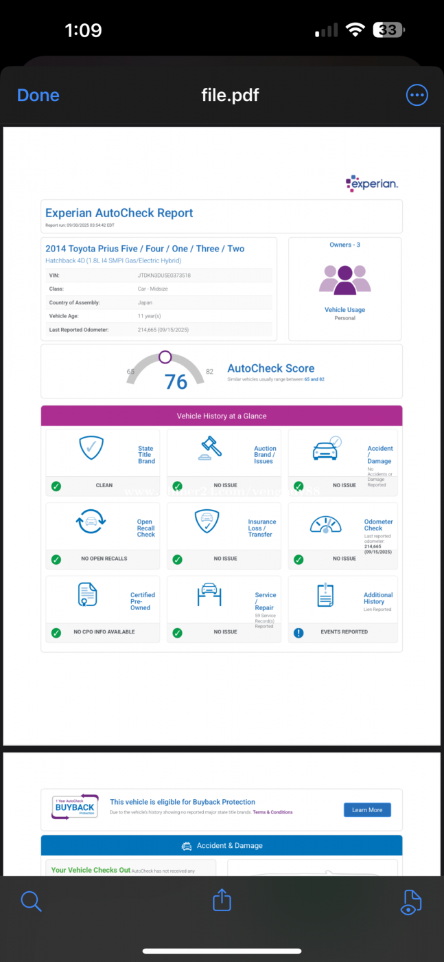 Toyota Prius 2014 Option 3 បង់ដើម 16xxx$ សាង 17xxx$ បេីកទូរថ្ងៃ 29,12,2025 ពិន្ទុAutoCheck 76 លេខទូរសព្ទ 069698xxxClick To Call / 085698xxxClick To Call
