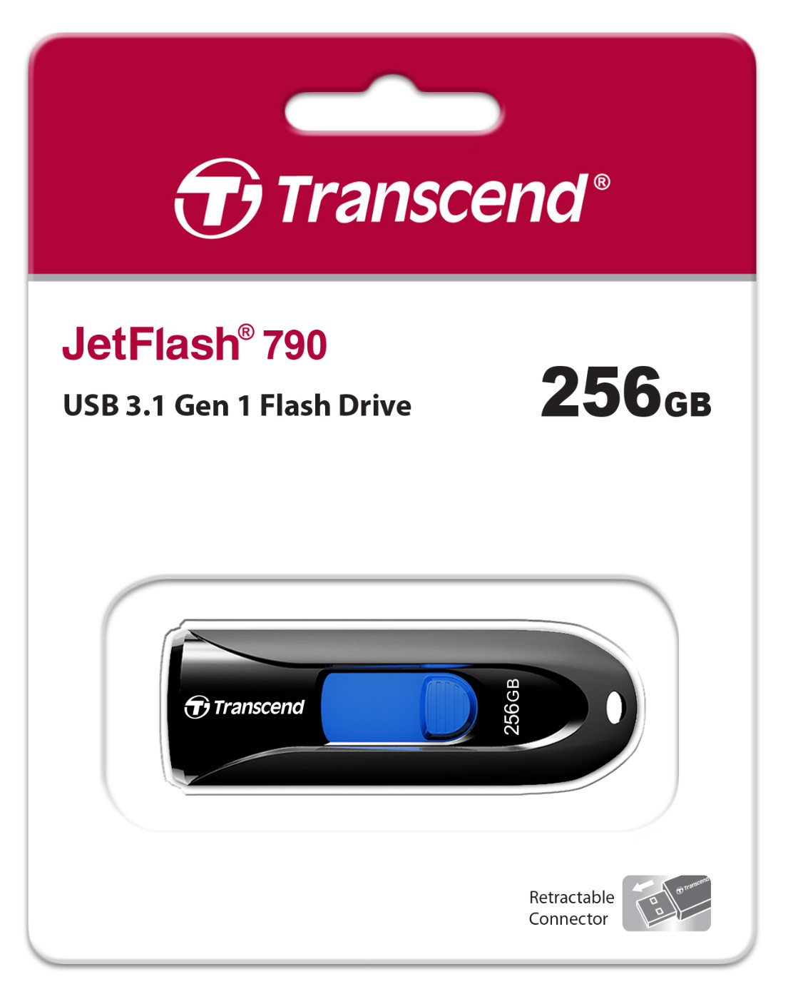 Transcend JetFlash JF790K 256GB, USB 3.1 Gen1 Drive, Capless Black (TS256GJF790K)
