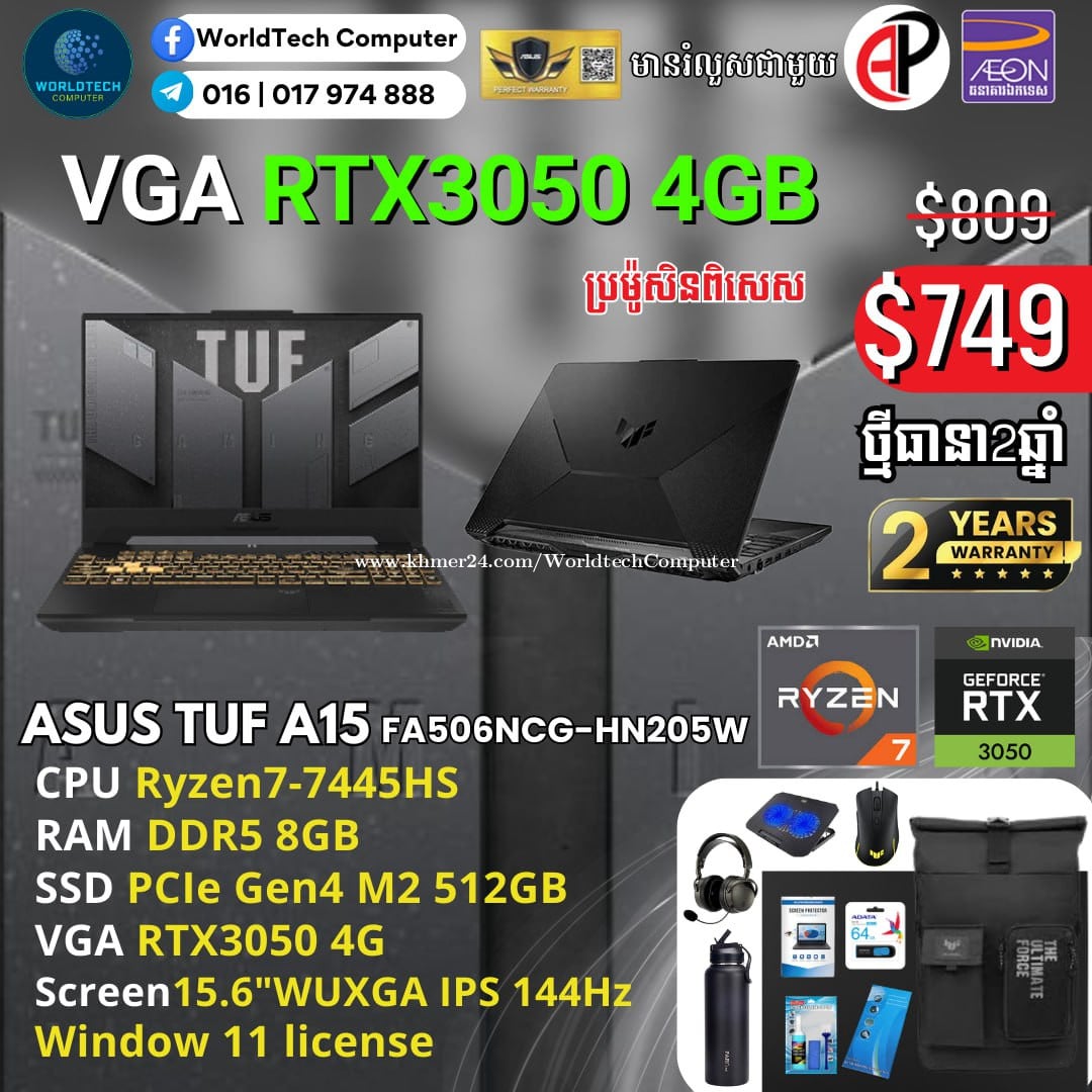 TUF A15 Rysen7-7445HS 8G M2 512G RTX3050 4G 15.6" 144Hz New2025=749$ TUF A15 Rysen7-7445HS 16G M2 512G RTX3050 4G 15.6" 144Hz New2025=799$ Warranty 2Years (Perfect Warranty 1year) -ថែមជូនការដូរ12មុខ បិទScreenជូន Telegram 017974xxxClick To Call , 011777xxxClick To Call