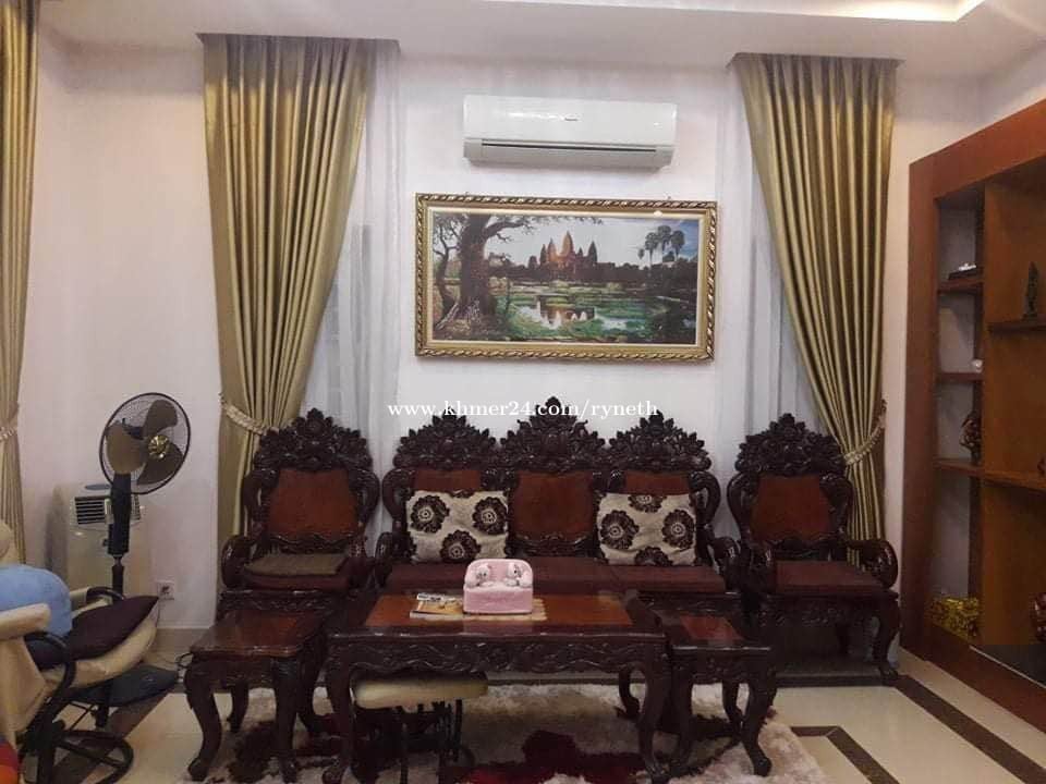 Twin Villa at Borey New World Camko 1 $750 Full Furniture Oknha Mong Rethy Street, Phnom Penh, Cambodia 4 bedrooms -6 bathrooms -1 Living room -1 Kitchen Size: 6m x 12m (Rear space 2m and corner 1.20m) Contact number: 010800xxxClick To Call