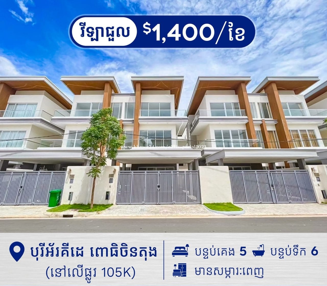 វីឡាភ្លោះ សម្រាប់ជួល នៅបុរីអ័រគីដេពោធិចិនតុង (H-14981) Twin villa for rent at borey orkide Pochentong -តម្លៃជួល: Rental price $1,400/m - ទំហំដី 6m x 12m Size land - ទំហំផ្ទះ 8m x 20m Size house - បន្ទប់គេង 5 Bedroom , បន្ទប់ទឹក 6 Bathroom -សម្ភារះពេញ Full furniture •Telegram 0965601xxxClick To Call📲 •Call 085222xxxClick To Call🤙📲
