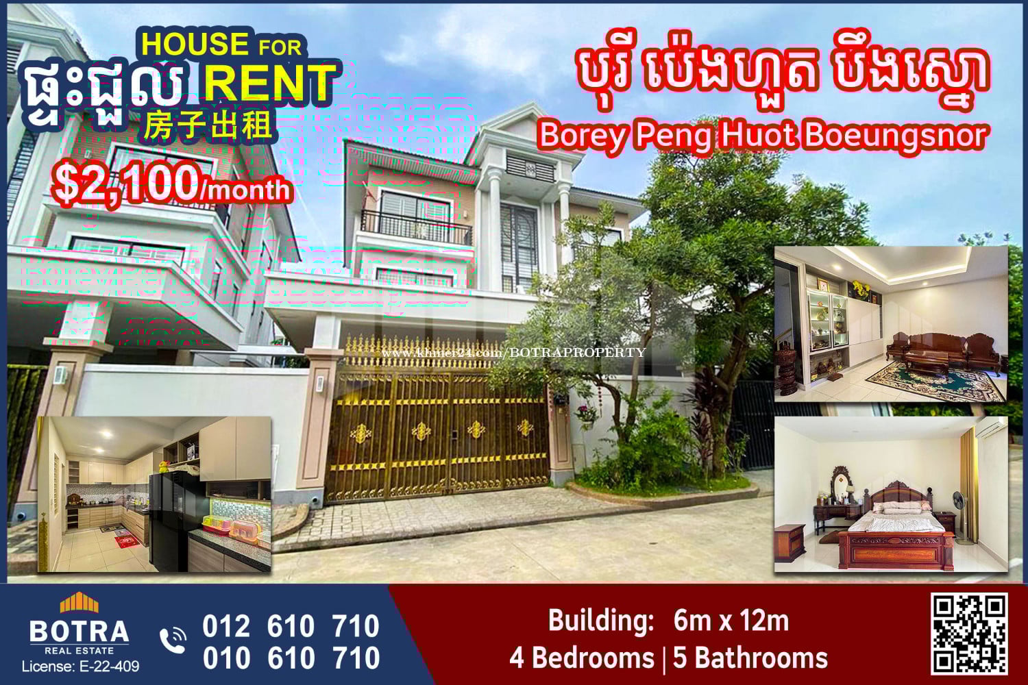 ๐ฃ Twin Villa for Rent #B1463 ๐ Borey Peng Huot Boeungsnor ๐ Price: $2,100/month โข Villa size: 6m x 12m โข 4 Bedrooms | 5 Bathrooms โข With Furniture โโโโโโโโโ Contact us now ๐ 012610xxxClick To Call (Cellcard) ๐ 010610xxxClick To Call (Smart) โถ๏ธ t.me/BotraRealEstate (Chat)