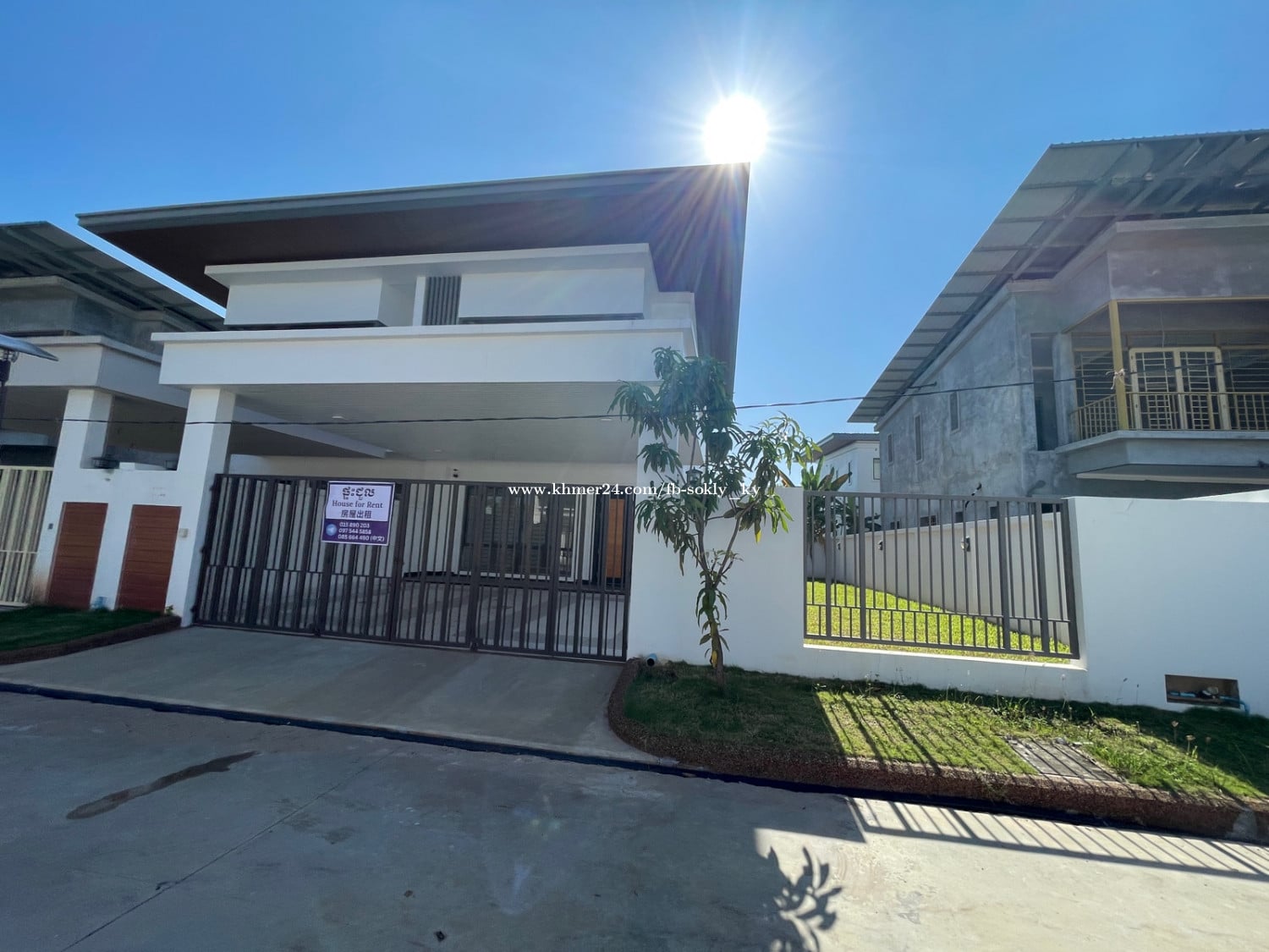 វីឡាភ្លោះ បុរី The Flora ជិតស្តាតថ្មី ផ្សារម៉ាក្រូថ្មី ទំហំដី 13.5m x 20m ទំហំផ្ទះ 7m x 11m មានដីចំហៀងផ្ទះធំទូលាយ សល់ដីចំហៀងផ្ទះ 6.5m តម្លៃជួល 700$/មួយខែ វីឡាភ្លោះបុរី ឌឹ ផ្លរ៉ា គម្រោង 3 សេនតូសា 📲085664xxxClick To Call Telegram Twin Villa for sales Land size 13,5m x 20m House size 7 x 11m 别墅出售 土地面积 13,5m x 20m 别墅面积 7m x 11m 电话号码 085664xxxClick To Call