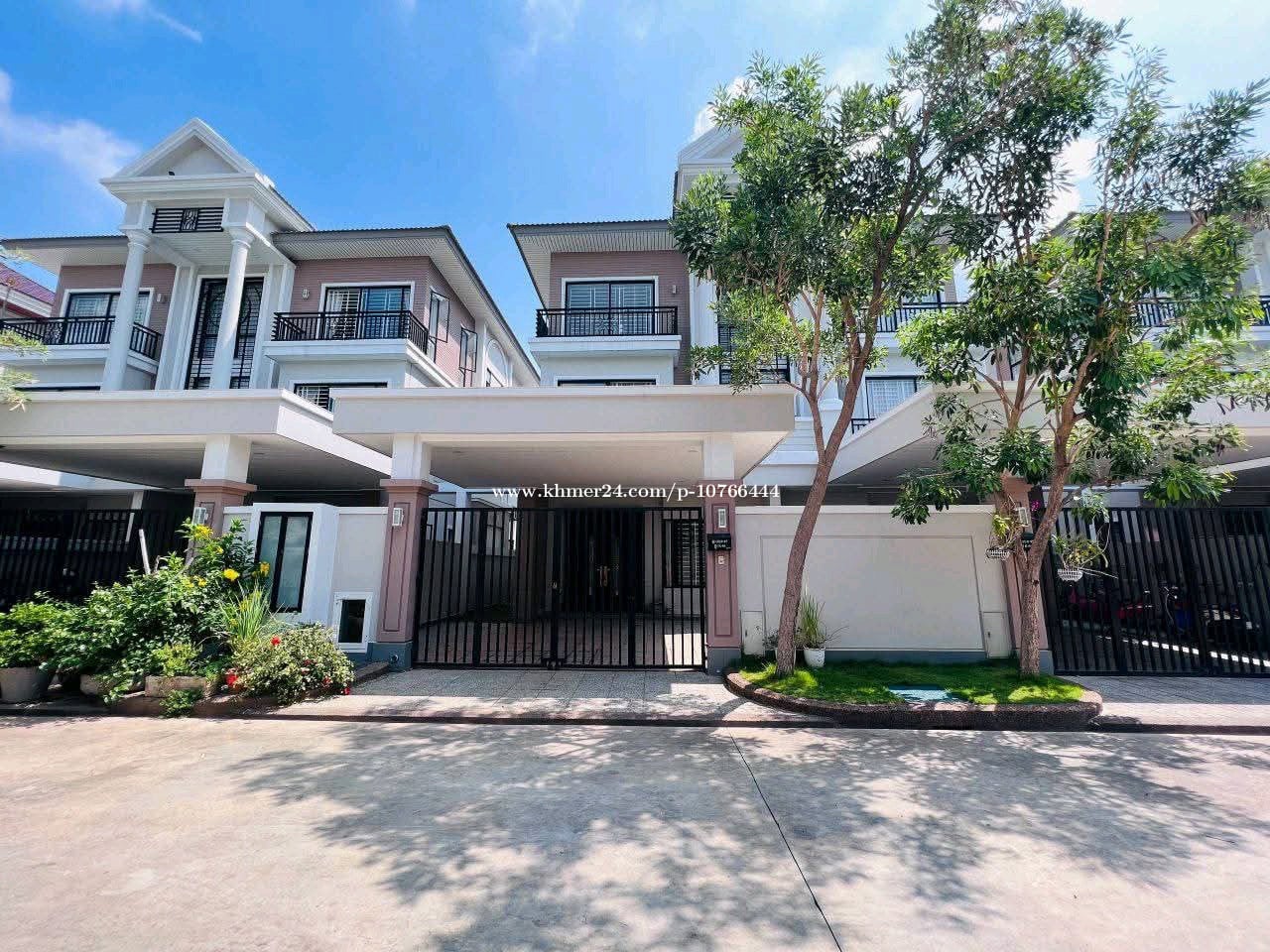 * Bedroom: 4 * Bathroom: 5 * Furniture: Fully furnished * Living room: 1 * Kitchen: 1 * Land  size: 7.7 × 26m * House size: 6 × 12m * Total floors: 3 * Facing: North * Location information: Community garden and kids play ground, swimming pool, 3 minutes from Chak Angrae market, 2 minutes from ISPP International school of Phnom Penh, 10 minutes from Chak Angrae Health Center, 4 minutes from Aeon 3 Mean Chey. and 7 minutes Chipmong Mega Mall 271. Panha Chan