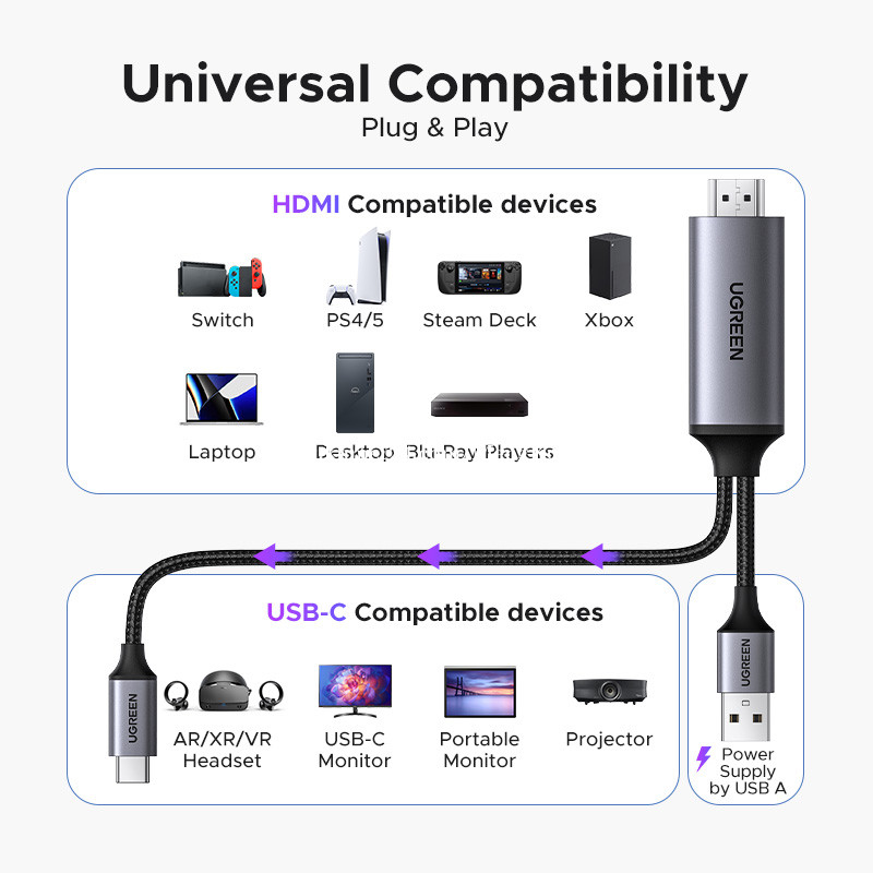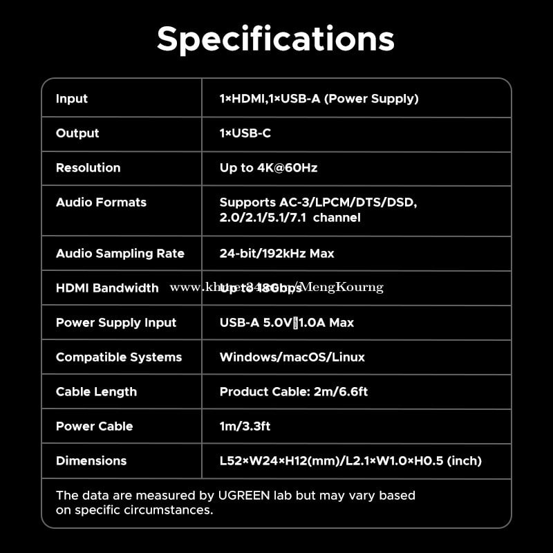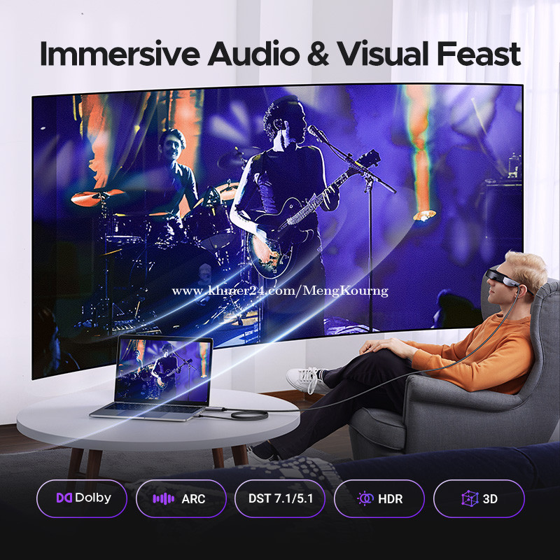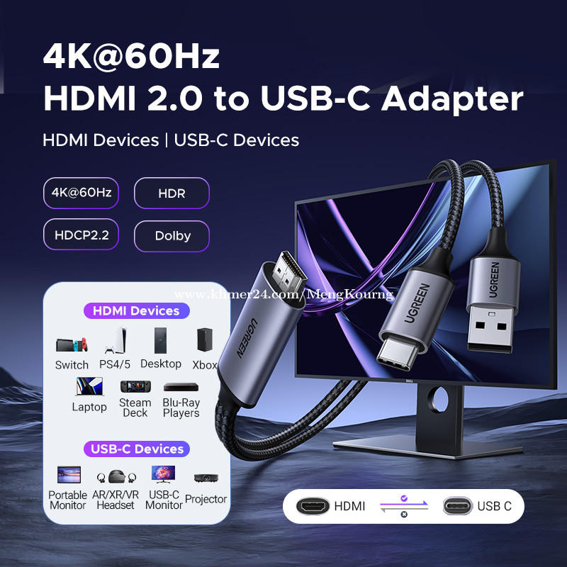 UGREEN HDMI to USB-C Cable 2M 35984A ✅Input:1×HDMI, 1×USB-A (Power Supply) ✅Output:1×USB-C ✅Resolution:Up to 4K@60Hz ✅Audio Formats:Supports AC-3/LPCM/DTS/DSD, 2.0/2.1/5.1/7.1 channel ✅Audio Sampling Rate:24-bit/192kHz Max ✅HDMI Bandwidth:Up to 18Gbps ✅Power Supply Input:USB-A 5.0V⎓1.0A Max ✅Compatible Systems:Windows/macOS/Linux ✅Cable Length: 2m/6.6ft, Power : 1m/3.3ft ✅The data are measured by UGREEN lab but may vary based on specific circumstances. 👍2 YEAR WARRANTY *This price not include delivery 🛒កម្ម៉ង់ឥឡូវនេះ 👇👇👇 ផ្នែកលក់ 012787xxxClick To Call https://t.me/cmksale1 Join ⏬ Telegram 🔔 https://t.me/+pMlYdQSBYkEyYTU1 ដើម្បីទទួលបាន ព័ត៌មានថ្មីៗ លម្អិត និងការផ្តល់ជូនពិសេសៗ ពីជួម៉េងគួងកុំព្យូទ័រ 🌐cmkcomputer.com 🌐https://www.facebook.com/MengKourngComputer 🌐https://www.facebook.com/cambodiafantech