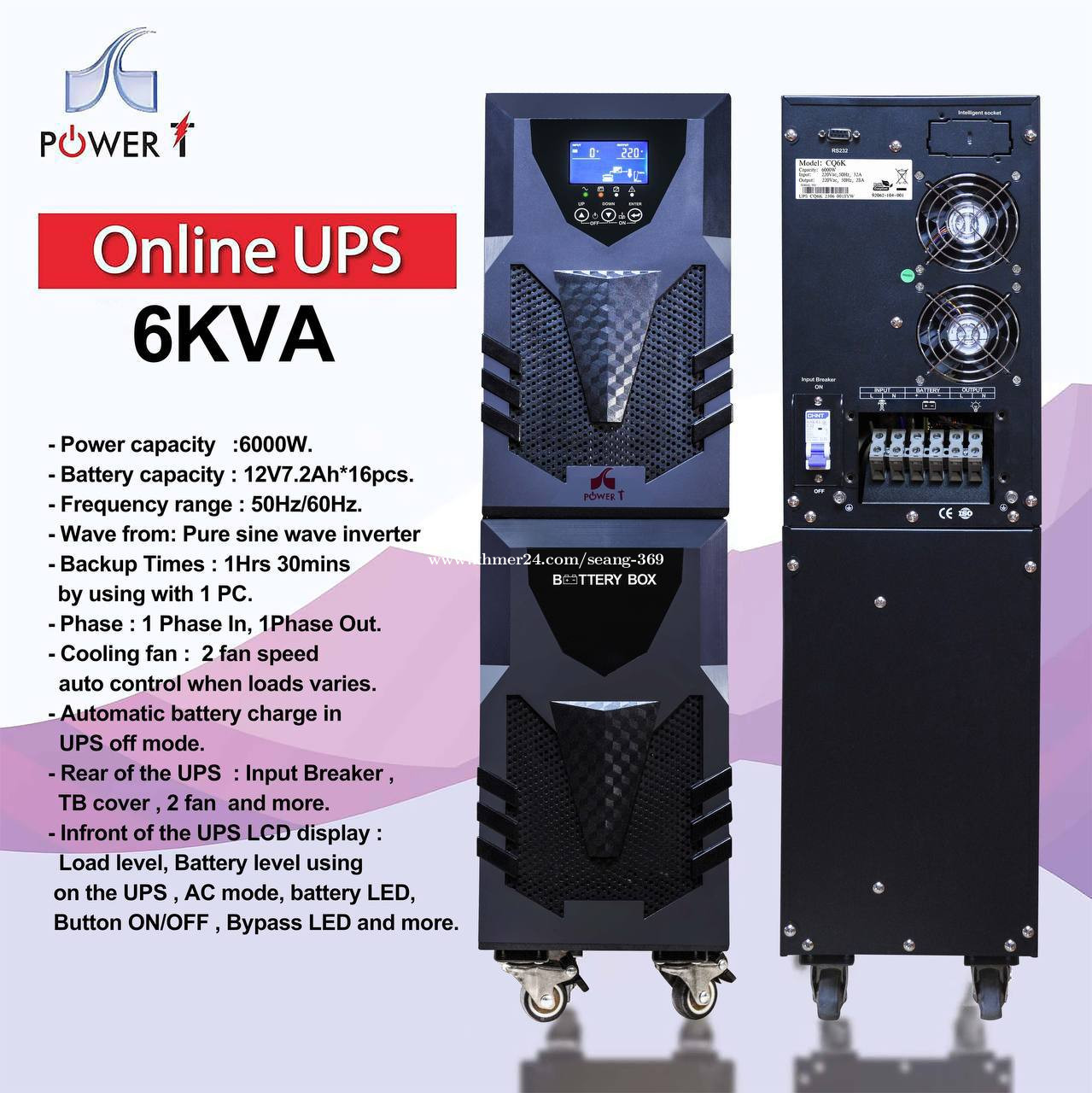 UPS PowerT 750VA, 1250VA, 1KVA, 2KVA, 3KVA, 6KVA, 10KVA មានច្រើនជំរើសសំរាប់បងប្អូន តាមតំរូវការ (អាចកម្មង់បាន) ។