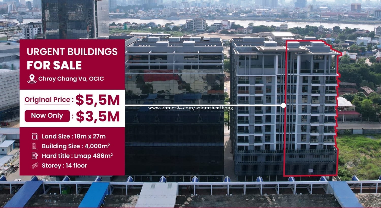 ๐ข แขแแถแแแแแแแแแถแแโ | Urgent Building For Sale | ็ดงๆฅๅบๅฎๅปบ็ญ็ฉ ๐ฅ แแแ แแแธ: 18m x 27m แแแ แแขแแถแ: 16m x 20m (4,000m2 แแถแ) แแแแแ: 14 floor แแแแแแแถแแแแแ: $ 5,5M แแแแแแฅแกแผแแแแ: $ 3,5M แแถแแถแแถแแแแแแแแแนแแแผแ โโโโโโโโโโโโ Land Size: 18m x 27m Building Size: 4,000m2 Storey: 14 Floor Sale Price: $ 5,5M Now Only Price: $ 3.5M Free Title Transferring โโโโโโโโโโโโ ๆฅๅฎๆฅผๅฎ ๅๅฐ้ข็งฏ:18m x 27m ๅปบ็ญๅฐบๅฏธ๏ผ16m x 20m๏ผ่ถ ่ฟ4,000m2) ้ซๅบฆ๏ผ14ๅฑ ่ฆไปท๏ผ5,500,000 ็พๅ ็พๅจๅนๆ ผ:3,500,000 ็พๅ ๅ ่ดน่ดขไบง่ฟๆท ๅฎๅ็่ฎกๅ ๐ แแธแแถแแ/Location/ๅฐ็น: Chroy Changva, OCIC, Phnom Penh โ๏ธ Contact: 095826xxxClick To Call/081823xxxClick To Call โโโโโโโโโโโโโโโ #buildingforsale #buildingforrent #แขแแแถแแแแ #condoforsale #investmentproperty #HighROI #bestproperty