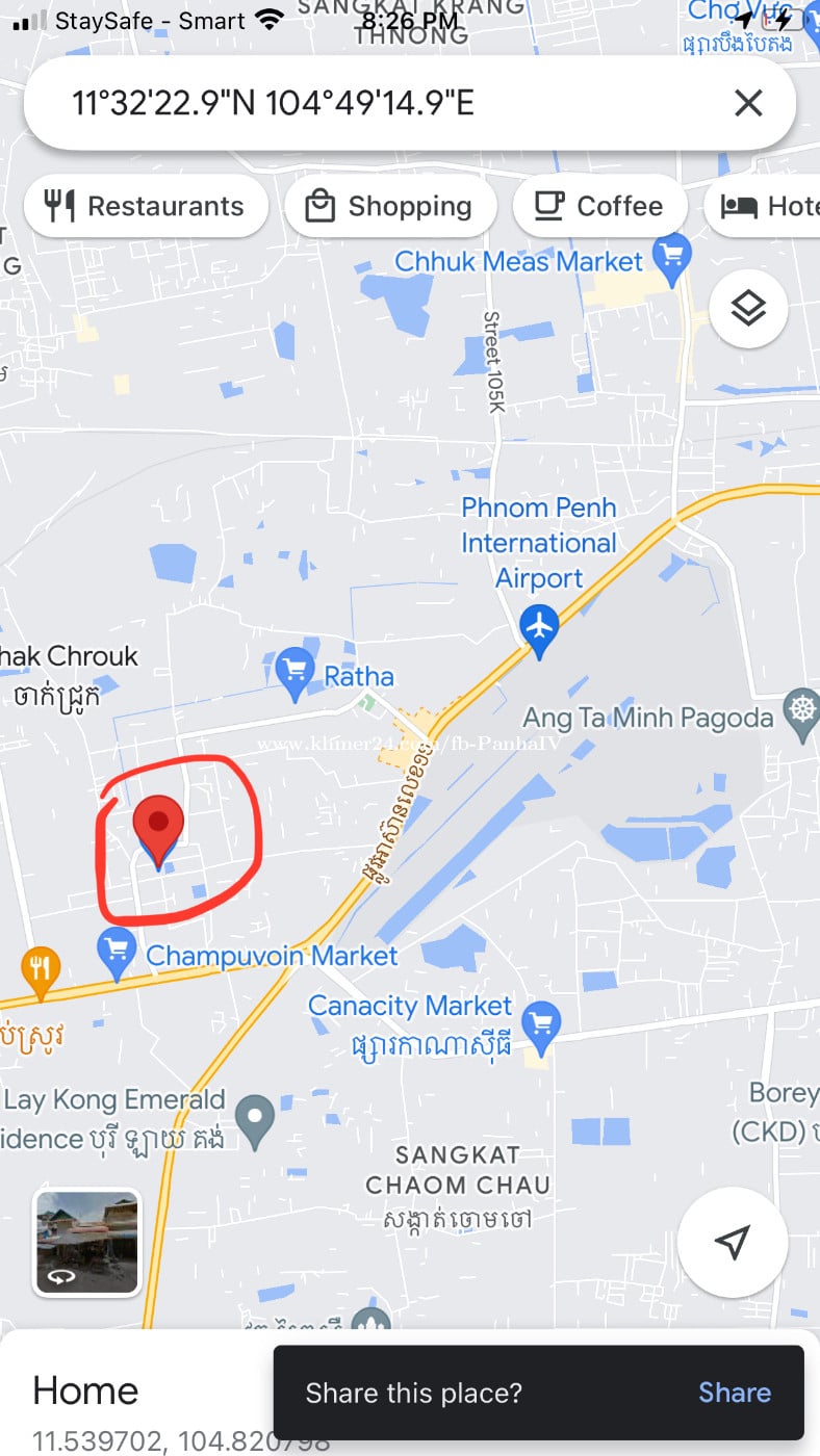 Location: Prey pring khang jerng 2 Sangkat chom Chao khan posenchey Phnom Penh Chakto Mukh, Doun Penh, Phnom Penh