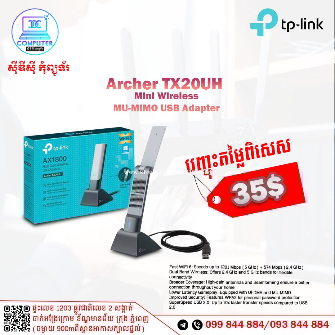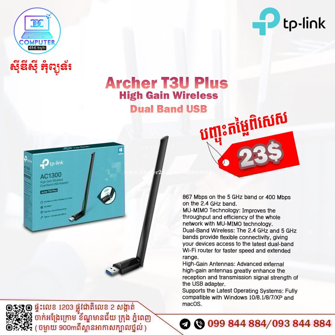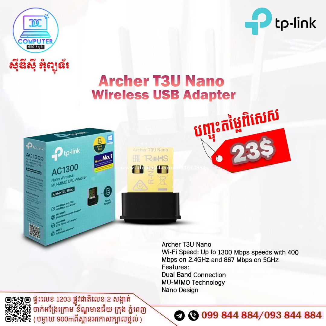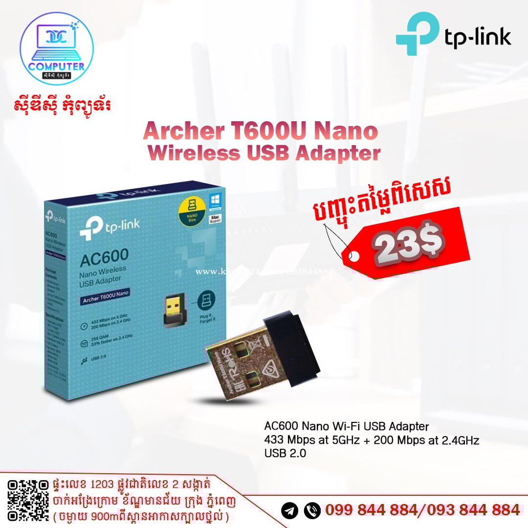 USB Wireless TP-Link មានច្រើនជម្រើស ចាប់ពី 150Mb ឡើងទៅ ! 💯 អតិថិជនអាចអញ្ញើញមកផ្ទាល់ដល់ទីតាំងហាងបានទំនិញមានស្រាប់មិនបាច់រង់ចាំយូរ ! ☎️ទូរស័ព្ទលេខ : 093844xxxClick To Call / 099844xxxClick To Call 📬Telegram : t.me/CDCCOMPUTER093 🏠ទីតាំងហាង : ផ្ទះលេខ 1203 ផ្លូវជាតិលេខ2 , ចាក់អង្រែលើ , ខ័ណ្ឌមានជ័យ , ភ្នំពេញ ( ចំងាយ 900m ពីស្ពានអាកាសក្បាលថ្នល់ ) 📍 Google map : https://maps.app.goo.gl/R3W9thPP5omgsMaZA