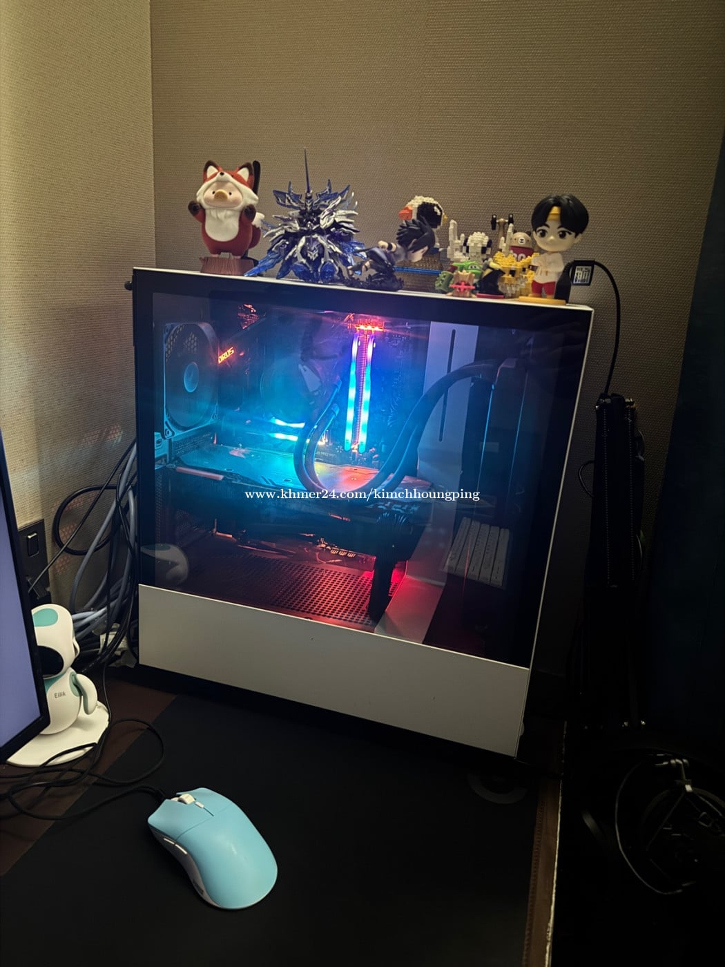 - CPU : Intel® Core™ i9 9900KF (8cores / 16 threads /16M Cache, 5.0 GHz) - COOLER : NZXT Kraken X52 240mm - Infinity Mirror Design - MOTHERBOARD : Aorus Z390 AORUS Pro Wifi - RAM : hermaltake TOUGH-RAM Z-ONE RGB DDR4 3200MHz 16GB (8GB x 2) - M.2 : XPG SPECTRIX S40G 256GB RGB - HHD : WD Blue 1TB PC Hard - GPU : Aorus RTX 2080 SUPER™ 8G - Powersupply : Masterwatt 650w Semi-fanless Modular (80+ Bronze) - CASE : NZXT H510i ATX Case ( Matte White )