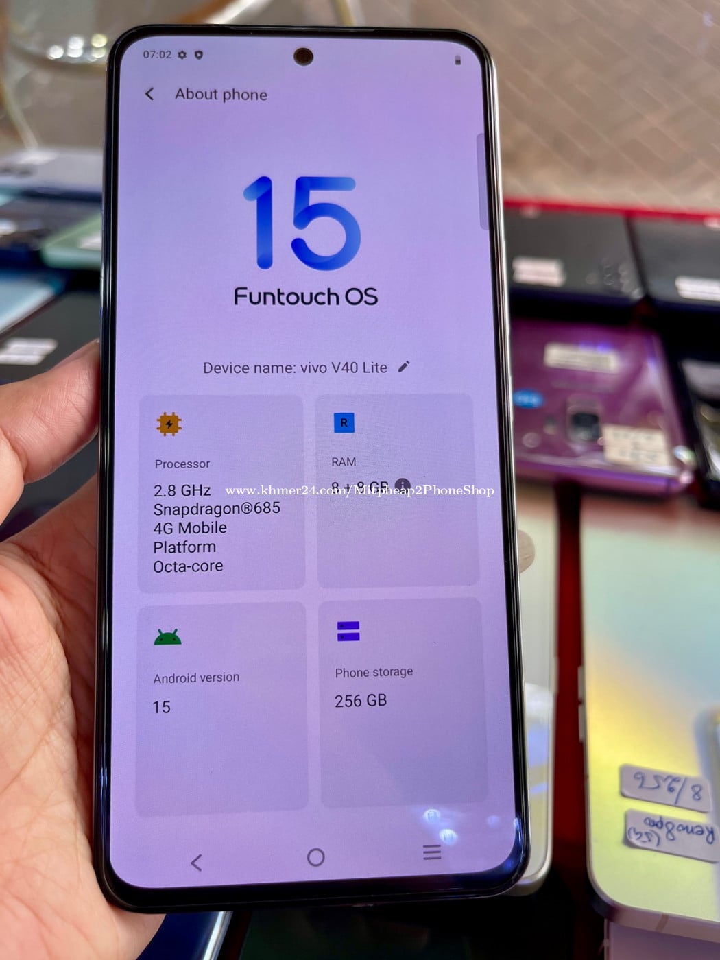 Vivo V40liteមួយទឹកRam8Rom256
