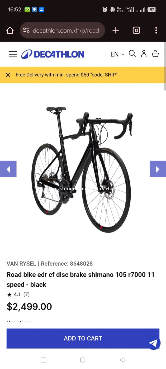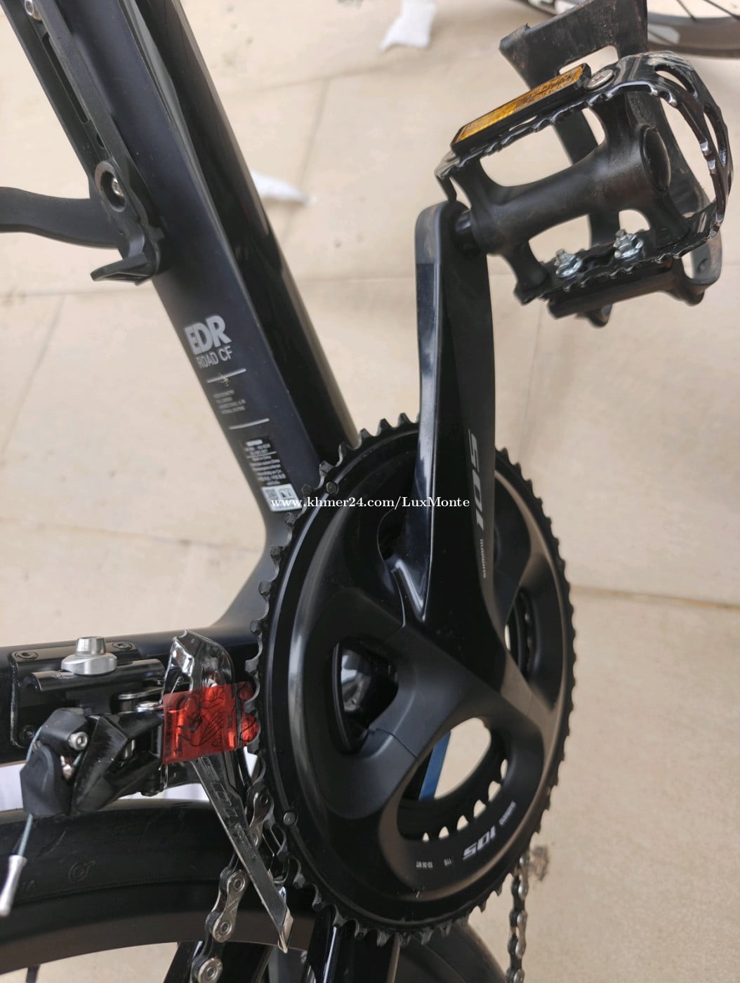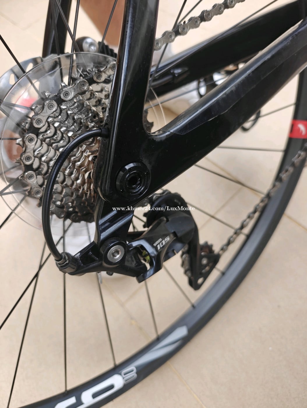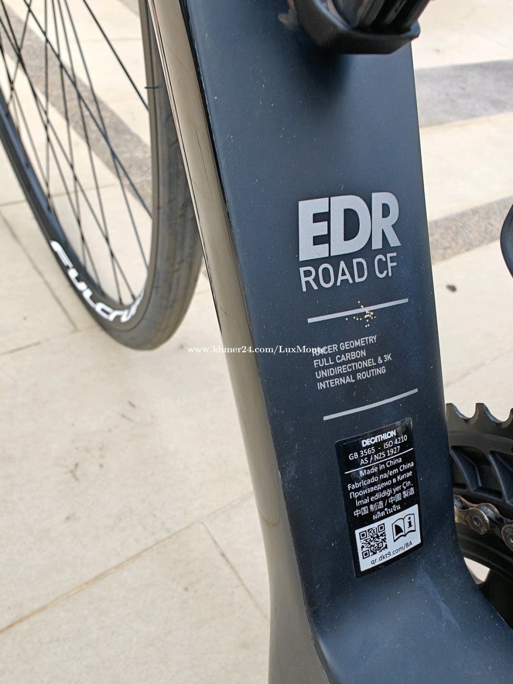 Used only once. 99% new from Decathlon Cambodia. Road bike edr cf disc brake shimano 105 r7000 11 speed - black Full Shimano 105 Disc groupset and Fulcrum Racing 900 DB wheelset lightweight High modulus carbon frame and fork braking power Hydraulic disc brakes. weight 8.2 kg in size M, without pedals