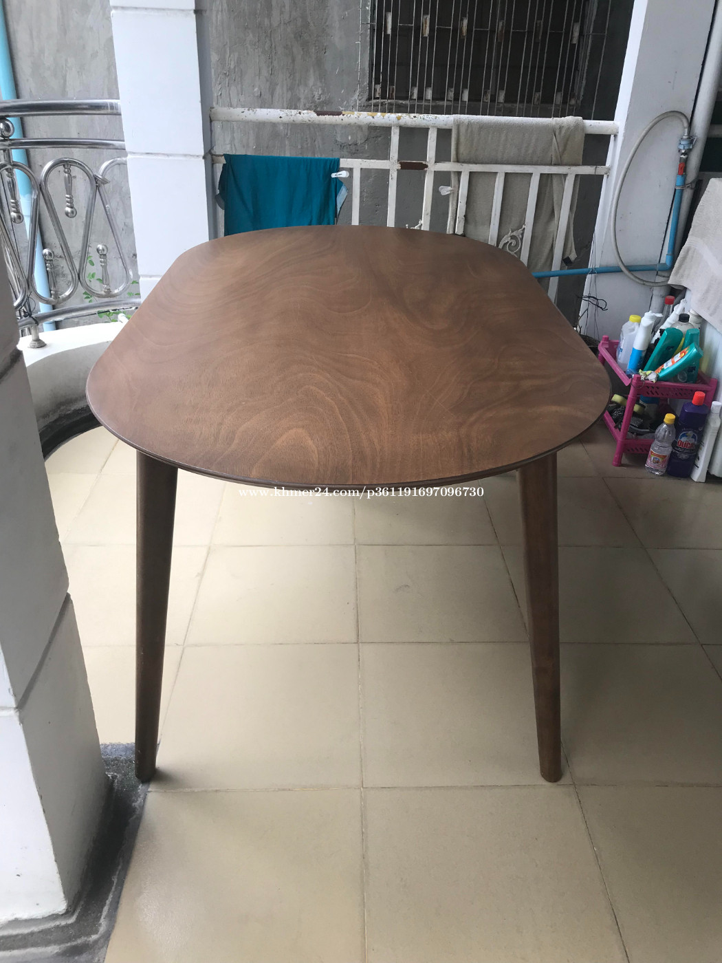 Table de salle à manger en bois de bonne qualité, longueur 1,60 mètre, largeur 0,90 mètre, hauteur 0,74 mètre avec six chaises en bois de bonne qualité. Etat neuf.