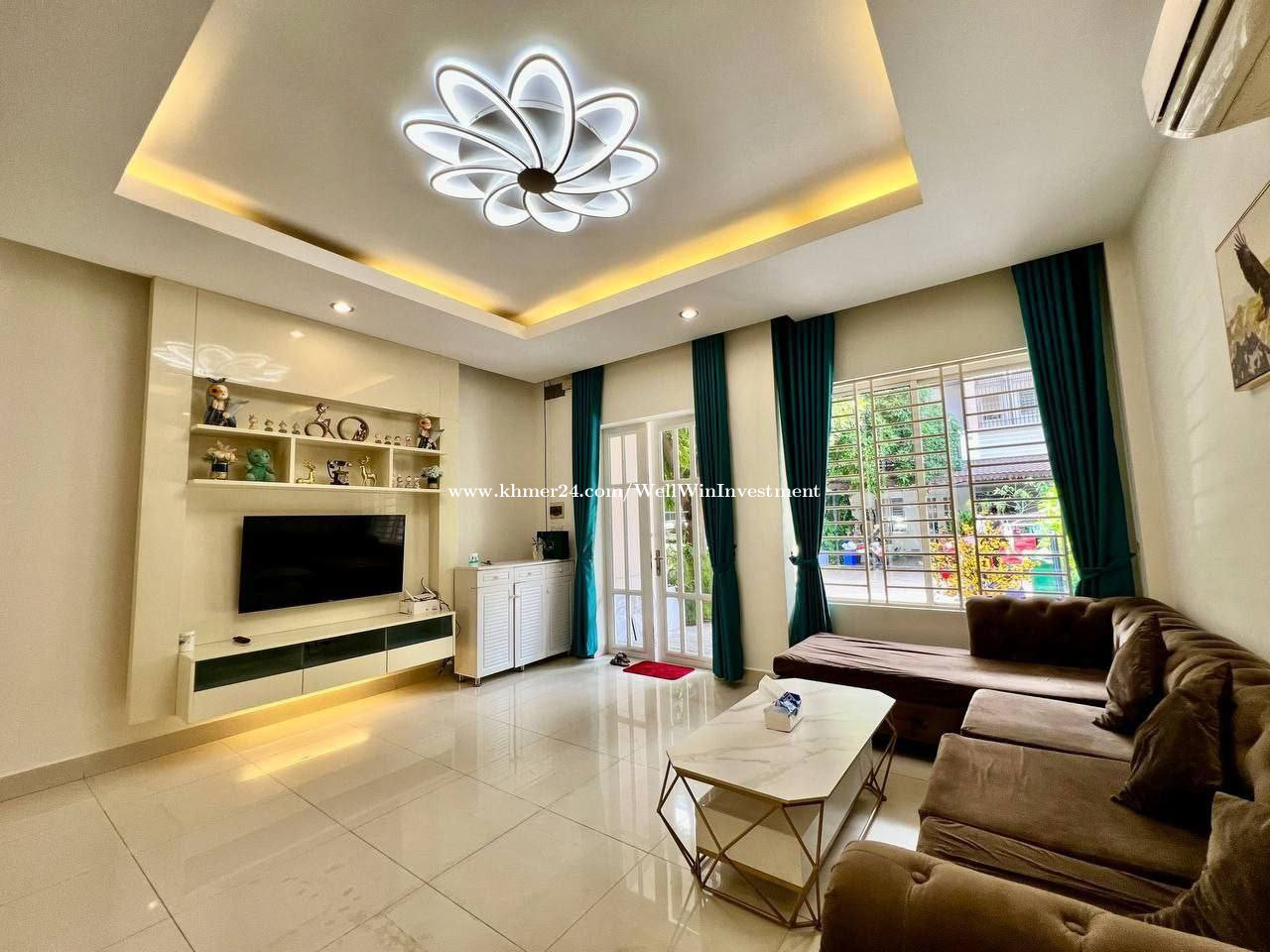Villa for rent Property code: BVL25-109 Rental 租金: 1,800$ /month (Can Negotiate) Land size 土地面积: 5.1m x 20m House size 房子面积: 5.1m x 12m Bedroom 房间: 4 Bathroom 浴室: 5 Location 地址: Chbar Ampov district, Phnom Penh Contact number 联系方式: 070722xxxClick To Call / 098999xxxClick To Call
