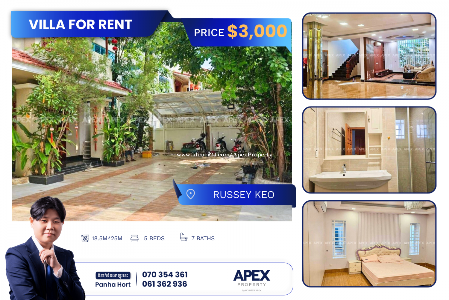 Villa for rent at Borey Vimean Phnom Penh (Near Aeon2) Price: $3000 (nego) Land size: 18.5m x 25m ✅ Fully Furnished ✅ 05 Bedroom, 07 Bathrooms ✅ 3 Balcony ✅ 1 helper’s room ✅ Parking space: 4-5 cars 金边 Borey Vimean 别墅出租(靠近 Aeon2) 土地面积:18.5m x 25m ✅ 全装修 ✅ 05 间卧室,07 间浴室 ✅ 3 个阳台 ✅ 1 个佣人房 ✅ 停车位:4-5 辆车 វីឡាសម្រាប់ជួលនៅបុរីវិមានភ្នំពេញ (ជិត Aeon2) ទំហំដី 18.5ម x 25ម ✅ គ្រឿងសង្ហារឹមពេញលេញ ✅ បន្ទប់គេង 05 , បន្ទប់ទឹក 07 ✅ យ៉រ 3 ✅ បន្ទប់ជំនួយ 1 ✅ ចំណតឡាន 4-5 ឡាន Telegram: https://t.me/panha_hort : https://t.me/panha_hort_23 Phone number: 070354xxxClick To Call :061362xxxClick To Call