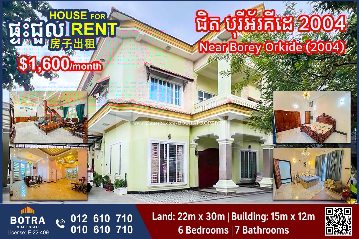 ๐ก Villa for Rent #P1319 ๐ Near Borey Orkide (2004) ๐ Price: $1,600/month (nego) - Land size: 22m x 30m - Villa size: 15m x 12m - 6 Bedrooms l 7 Bathrooms - Some Furniture โโโโโโโโโ Contact us now ๐ 012610xxxClick To Call (Cellcard) ๐ 010610xxxClick To Call (Smart) โถ๏ธ t.me/BotraRealEstate (Chat)