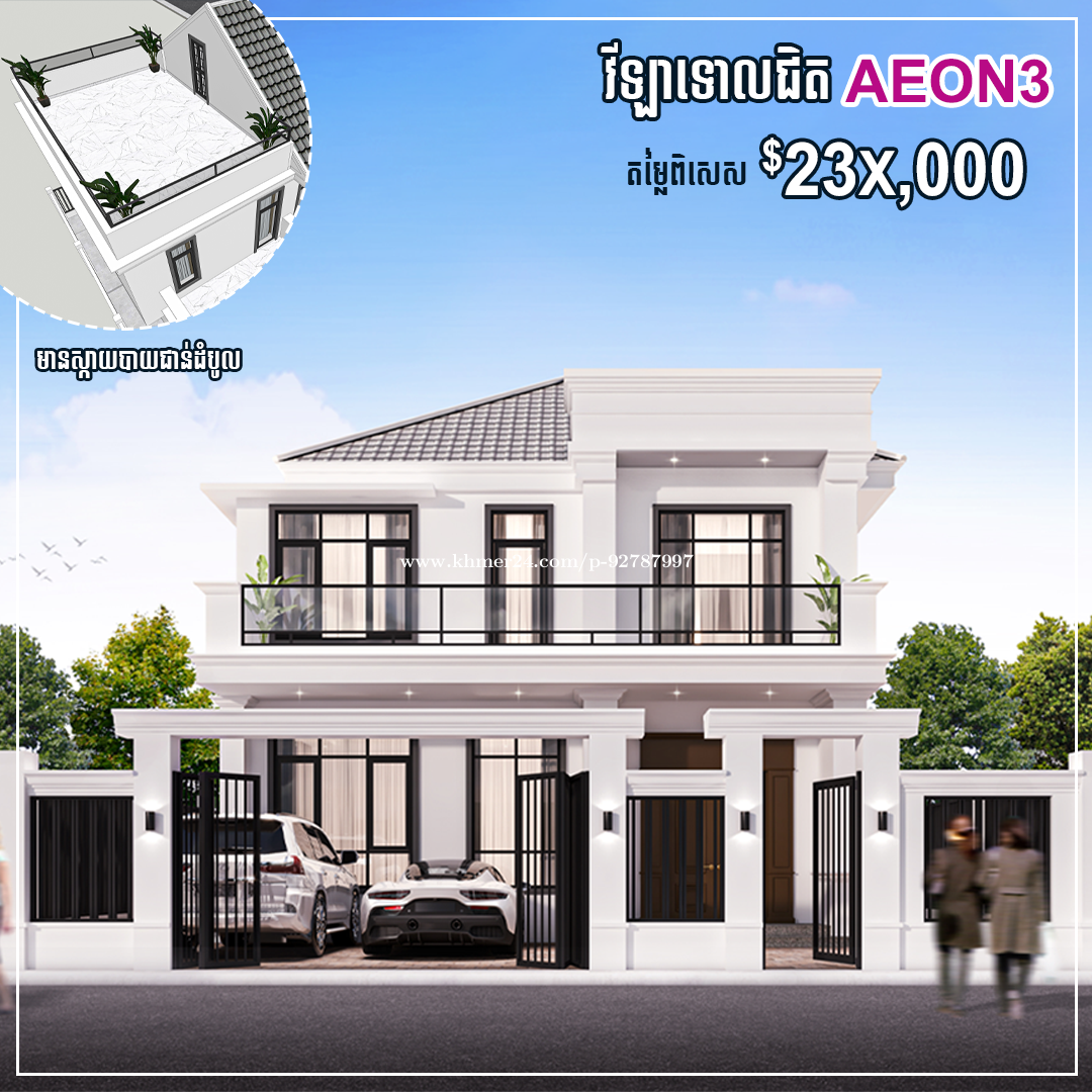 វីឡាទោលម៉ូឌើន ទាន់សម័យ និងឯកជនភាពក្នុងការរស់នៅមានទីតាំងប្រហែល៩០០ម៉ែត្រពីស្ពានអាកាសថ្មីសម្តេចធិបតី មហាវិថីតេជោ 60ម៉ែត្រ និង 6នាទីពីផ្សារទំនើបអុីអនមានជ័យ និង 8នាទីពីព្រលានយន្តហោះថ្មី ។ វីឡាទោលនេះតម្លៃល្អជាងគេក្នុងតំបន់ និងលក្ខខណ្ឌបង់ប្រាក់បត់បែន។ 👉លក្ខណៈពិសេស - ទំហំដីៈ 12m x 20m - ទំហំផ្ទះៈ 8m x 12m - កម្ពស់ៈ 2ជាន់ - បន្ទប់គេងៈ 4 - បន្ទប់ទឹក: 4 - តម្លៃជាង $23 មុឺនដុល្លា និងលក្ខខណ្ឌបង់ប្រាក់បត់បែន ❤️មកទទួលយកនូវបរិយាកាសរស់នៅបែបថ្មី និងបង្កើតសុភមង្គលគ្រួសារក្នុងផ្ទះវីឡាទោលដ៏ពិសេសមួយនេះ។ The Single Villa, designed with a modern and stylish concept that emphasizes privacy and comfort, is conveniently located just 900 meters from the new "Samdach Tepdei" flyover connecting to Techo Boulevard (60m). It is only a 6-minute drive to the sophisticated AEON Mall Meanchey and just 8 minutes away from the upcoming New International Airport (TIA). Own this beautiful detached villa at the best price in the area, with flexible payment plans that make your dream home more affordable than ever. ❤️Come and embrace a new way of living, where this special detached villa offers the perfect space to create lasting family happiness.