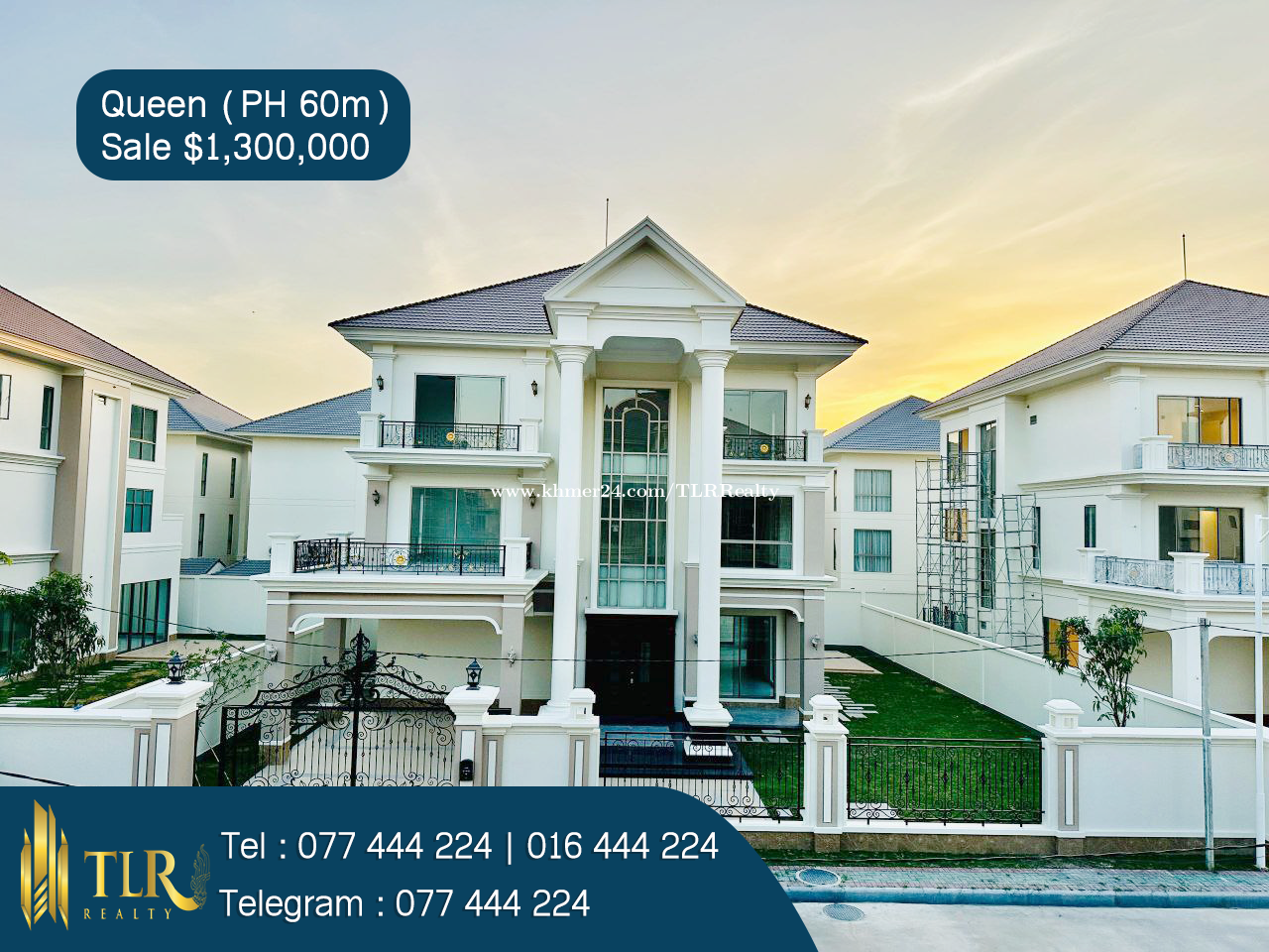 ๐ Villa Queen for Sale ๐ฒPrice : $1,300,000 - Title deed : Hard - House Size : 15.80m x 16.30m - Land Size : 21m x 36.30m - Bedroom 7 , Bathroom 9 ๐Location in Borey Peng Houth The Star Dimond 60m Project Morodok # E-24-449 ๐Tel : 077444xxxClick To Call / 016444xxxClick To Call ๐Telegram : @TLRRealty